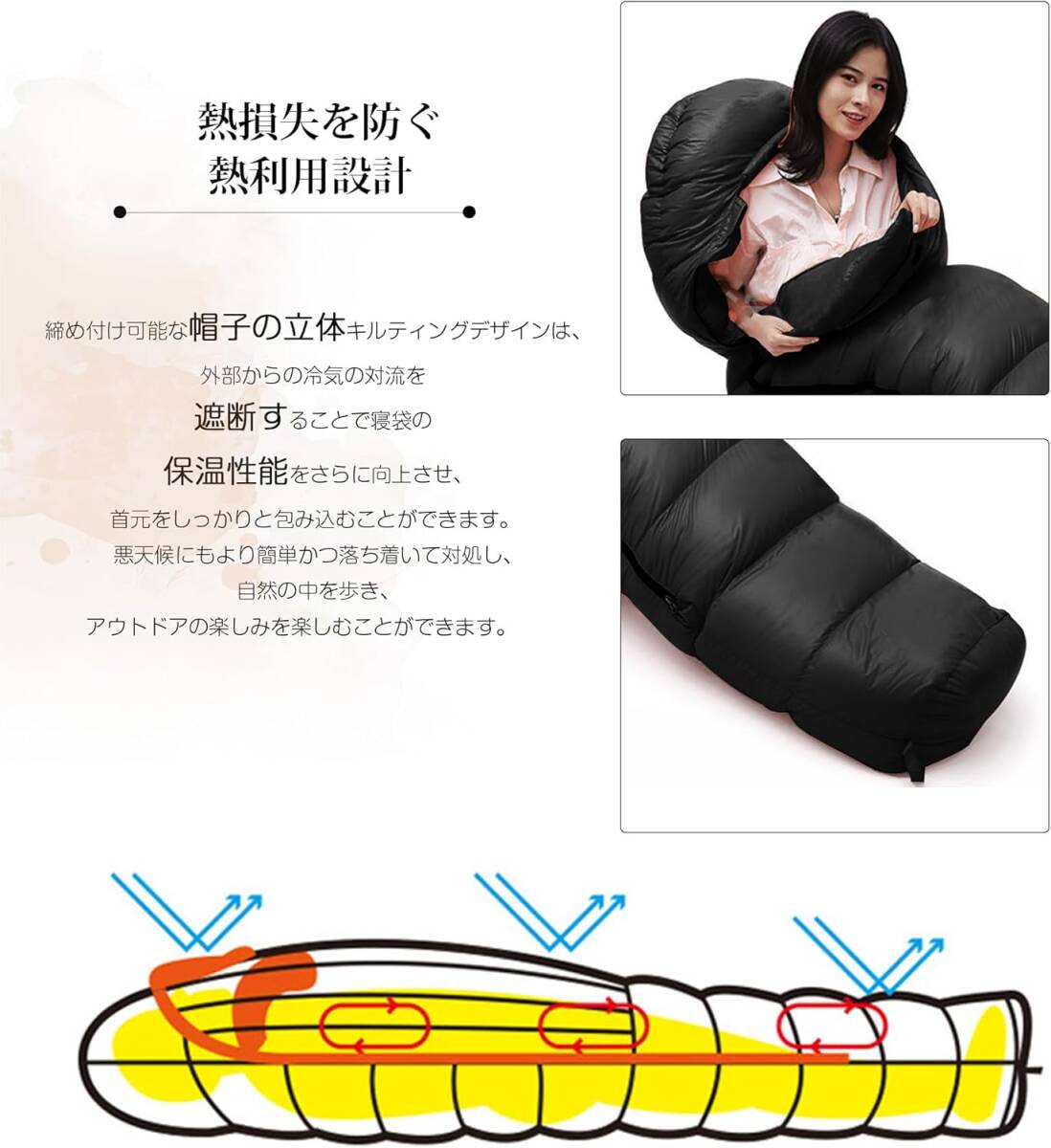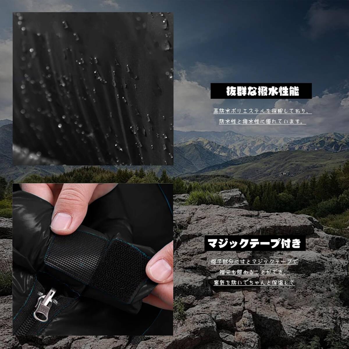 • 【体形にフィットする寝袋】マミー型寝袋は体にフィットするので、封筒型寝袋より暖かく、軽くて持ち運びが楽です。密着性が高く保温性の高いマミータイプです。 寝袋の足元には幅広の台形フットボックスが付いており、就寝時に窮屈さを感じません。柔らかな肌触りと優れた弾力性を追求し、上質な眠りを包み込むため、表層は高い超高密度生地である引き裂き強防水生地を使用しています。 耐摩耗性と防水性に優れ、ポリエステルの流出を防ぐことができます。しっかり温かさキープ!