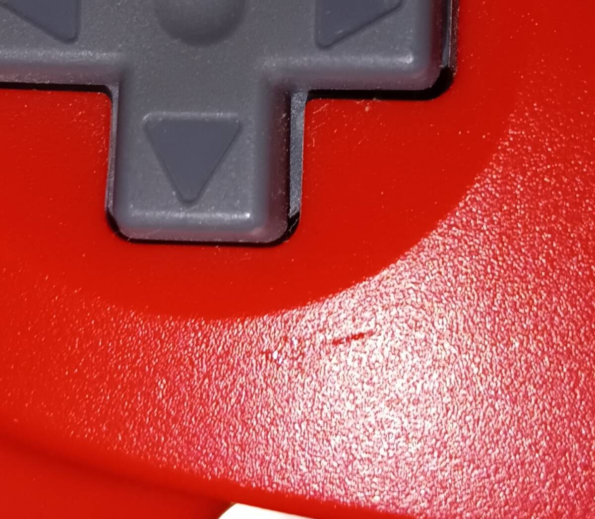「Nintendo」ロゴの左に点ほどの、十字キーの下辺りに6mmほどの傷があり、左グリップにやや大きな白い擦り傷?があります。