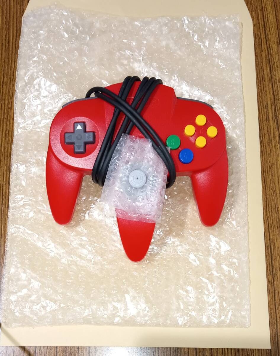 3Dスティックの周りをプチプチで保護してからコードをコントローラに巻き、プチプチの袋に入れてから封筒に入れて発送する予定です。