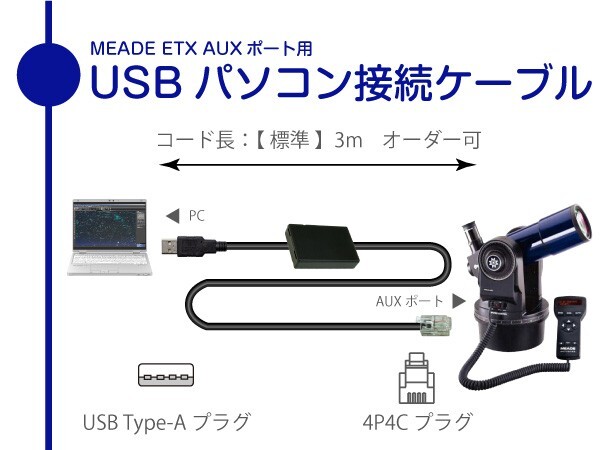 MEADE製 ETX-60 / ETX-70 / ETX-80 など望遠鏡とパソコンを接続する『USBパソコン接続ケーブル』です