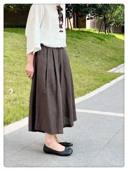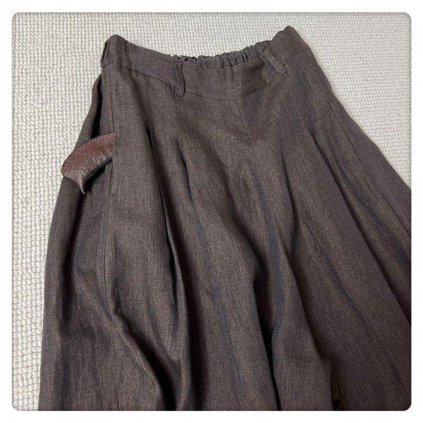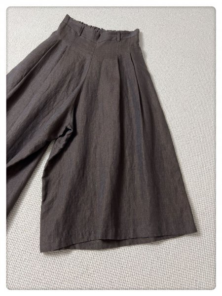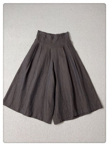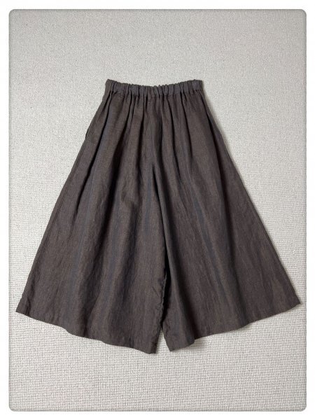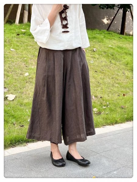 ps 0706 ガウチョパンツ スカートのような ズボン フリーサイズ 高質 麻100% リネン ナチュラル 通気性肌触り抜群 ゆったり 楽ちん 茶色系