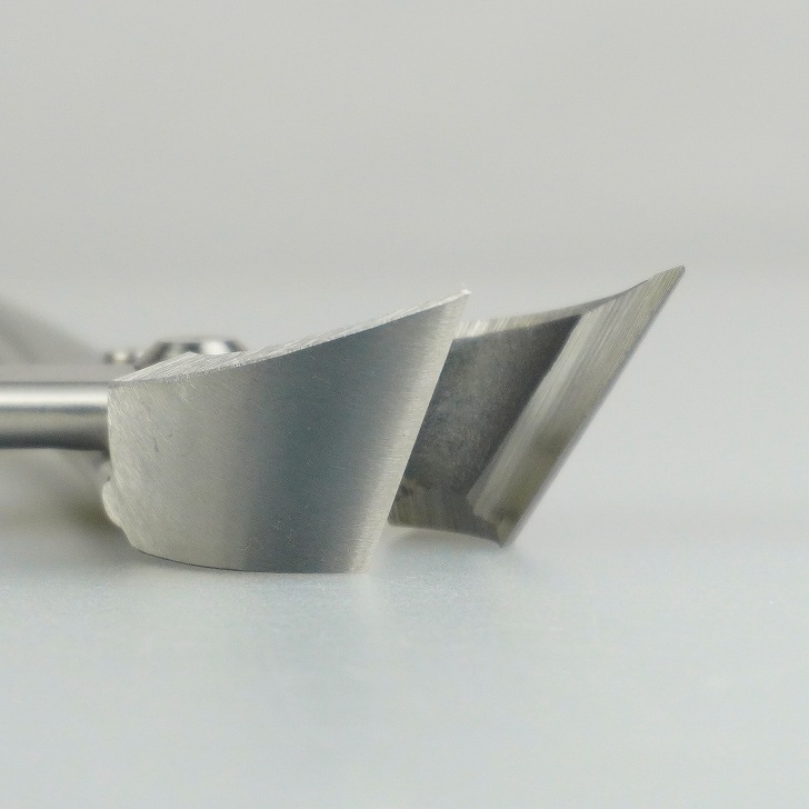 叉枝切りバサミ 一つの枝から同じ太さの枝が2叉、3叉に出ている叉枝の1本を根元から切るときに使用します。 切った後にコブができないようにややえぐれるように切れるよう工夫がされています。 |