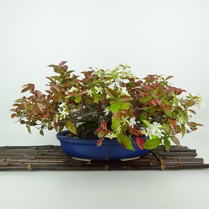 ■植物ですので撮影時期や季節によって剪定などの手入れにより写真から変化がございます。撮影日をご確認のうえ、ご注文ください。 【定家葛盆栽】 開花時期は初夏の5月~6月頃。 枝先や葉腋に集散花序をだし、白い花を咲かせます。 花には芳香があり、白色からしだいに淡黄色に変化していきます。 |