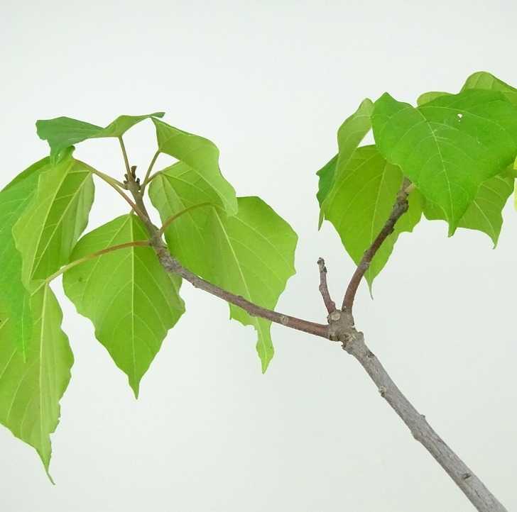 | ■植物ですので撮影時期や季節によって剪定などの手入れにより写真から変化がございます。撮影日をご確認のうえ、ご注文ください。 【アカメガシワ盆栽】 雌雄異株。 葉と種子は染料、樹皮は健胃の生薬になる。 名前の由来は新芽が鮮紅色であること、葉がカシワのように大きくなることから。 別名:ゴサイバ(五菜葉)他にも地方名を多く持つ。 |