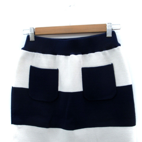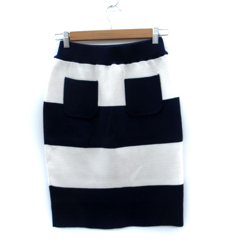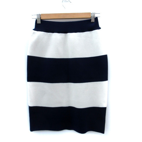 ビーミングバイビームス B:MING LIFE STORE by BEAMS ニットタイトスカート ミモレ丈 ボーダー柄 M 紺 ネイビー 白 ホワイト