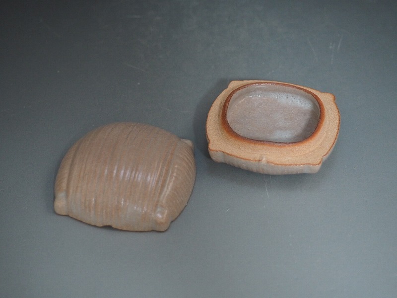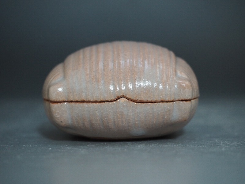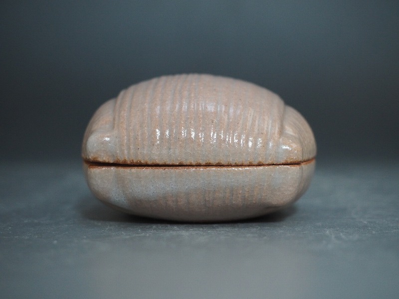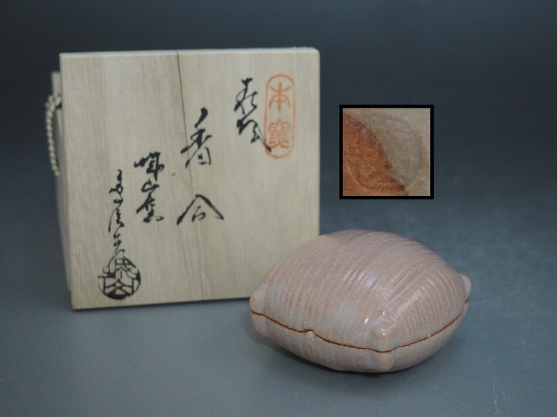 | A4382 萩焼 城山窯 金子信彦 作 香合 共箱付 ☆ 茶道具 茶器 抹茶器 抹茶道具 茶懐石 茶事 茶の湯 香盒 合子 盒子 陶器 作家物 在銘 陶印 | ||