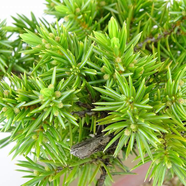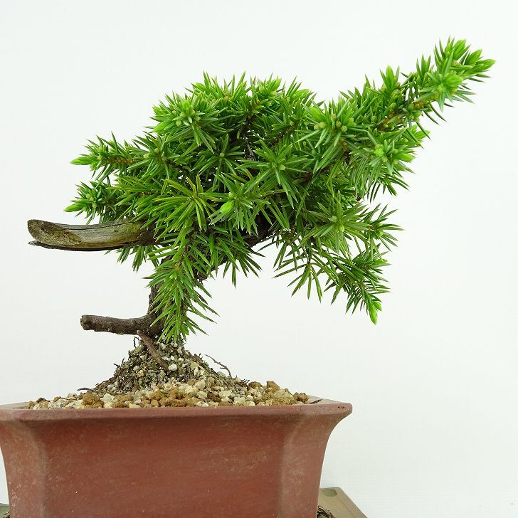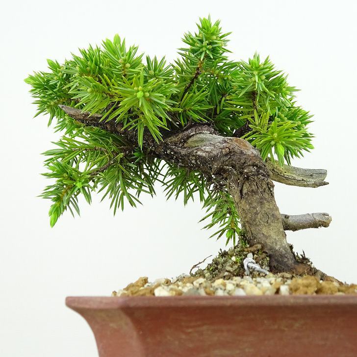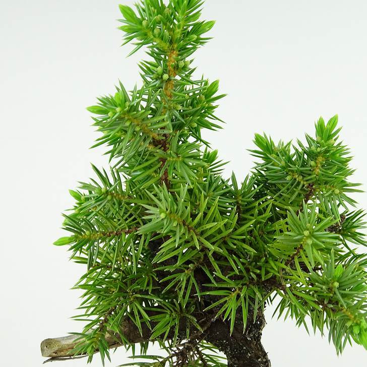 | ■植物ですので撮影時期や季節によって剪定などの手入れにより写真から変化がございます。撮影日をご確認のうえ、ご注文ください。 【杜松盆栽】 トショウという名前は主に盆栽界での呼称で、葉先がとがっていて触ると痛いのが特徴。この硬い針葉をネズミの通り道に置いてネズミ除けに使っていたことから、ネズミサシやネズの名で呼ばれています。 |