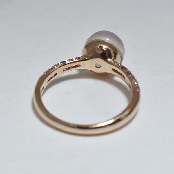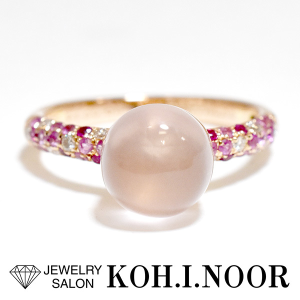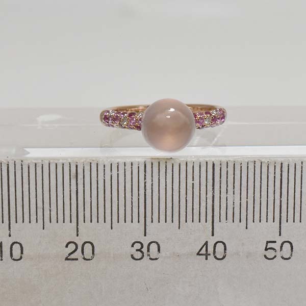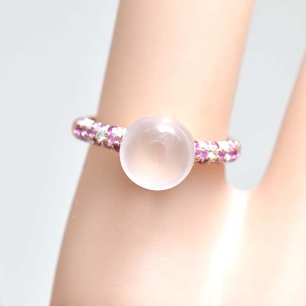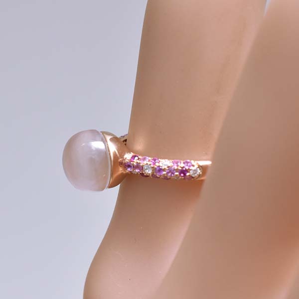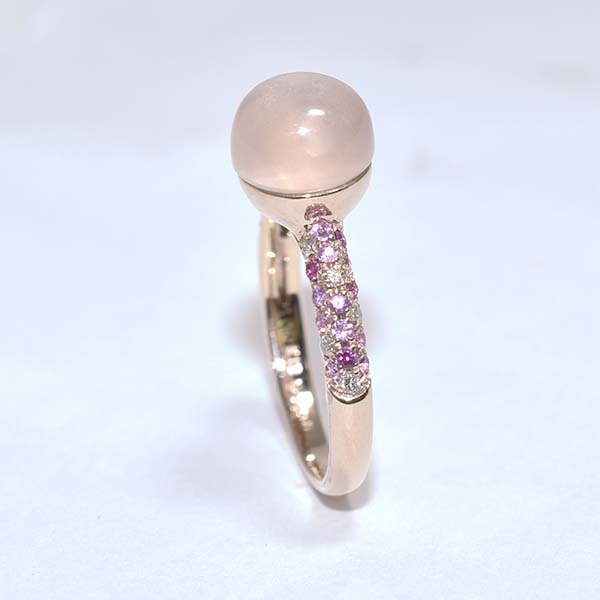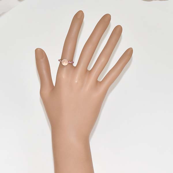 ローズクォーツをメインにした18金ピンクゴールド製のファッションリング。