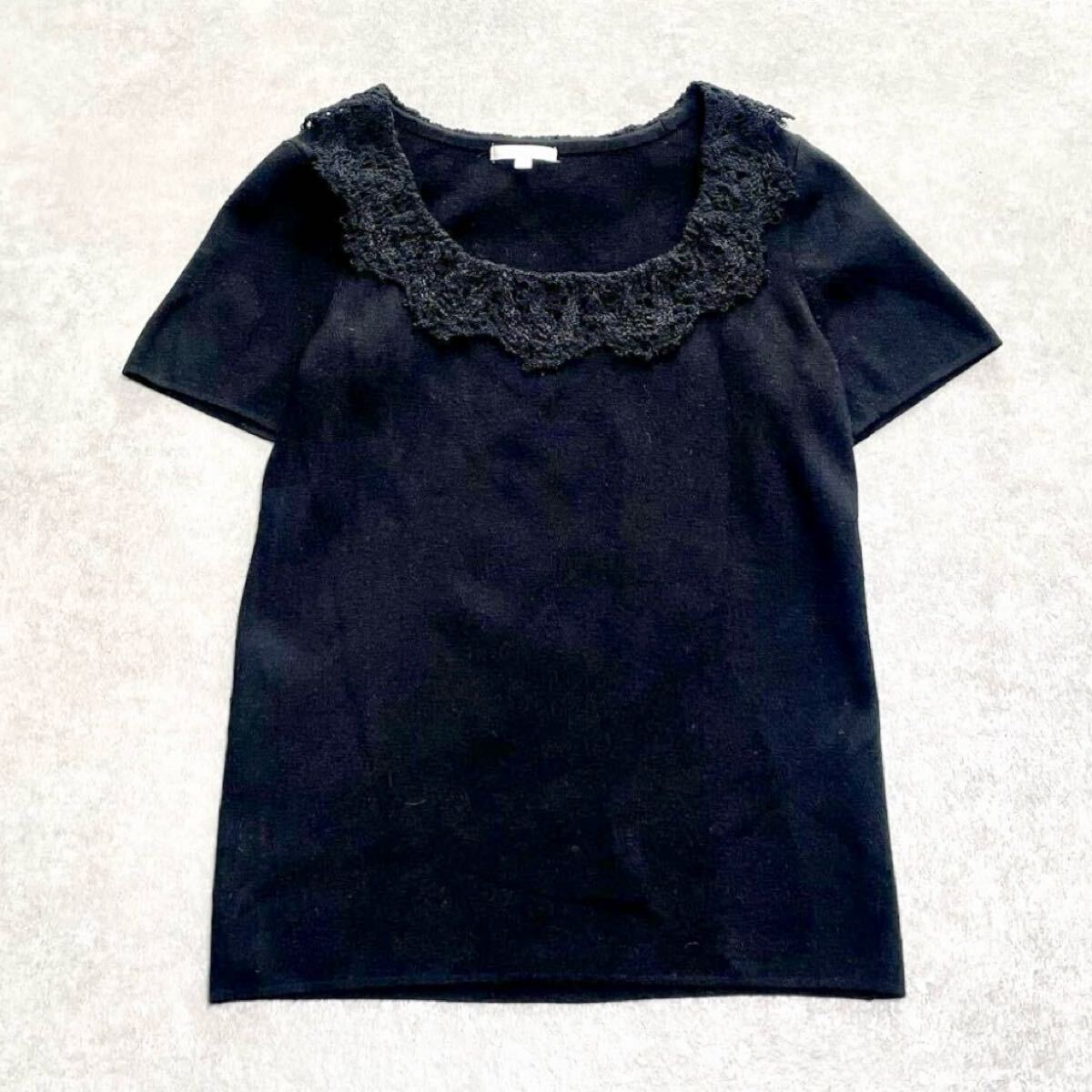 トゥービーシック TO BE CHIC ニット レース 半袖 トップス プルオーバー ブラック 黒 Sサイズ相当
