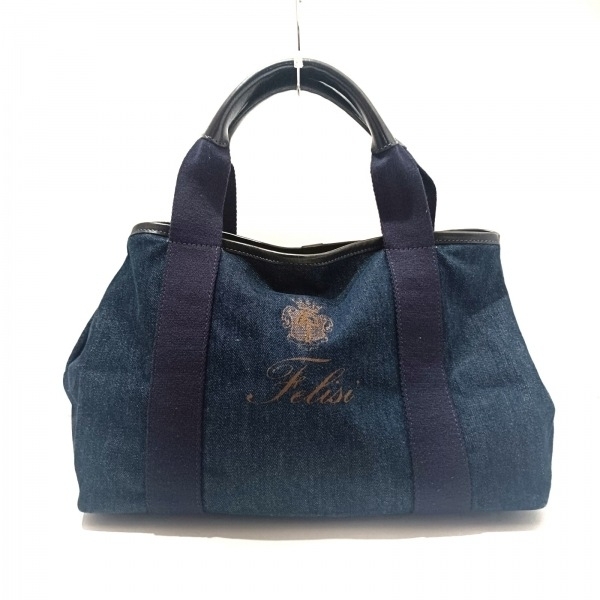 フェリージ Felisi トートバッグ 16-44 - レザー 黒×ダークネイビー バッグ