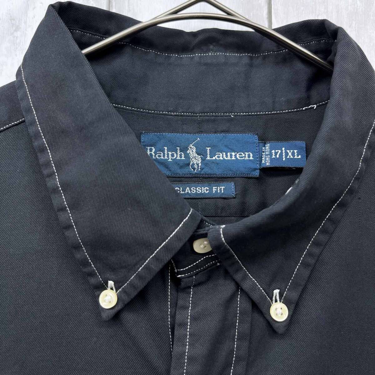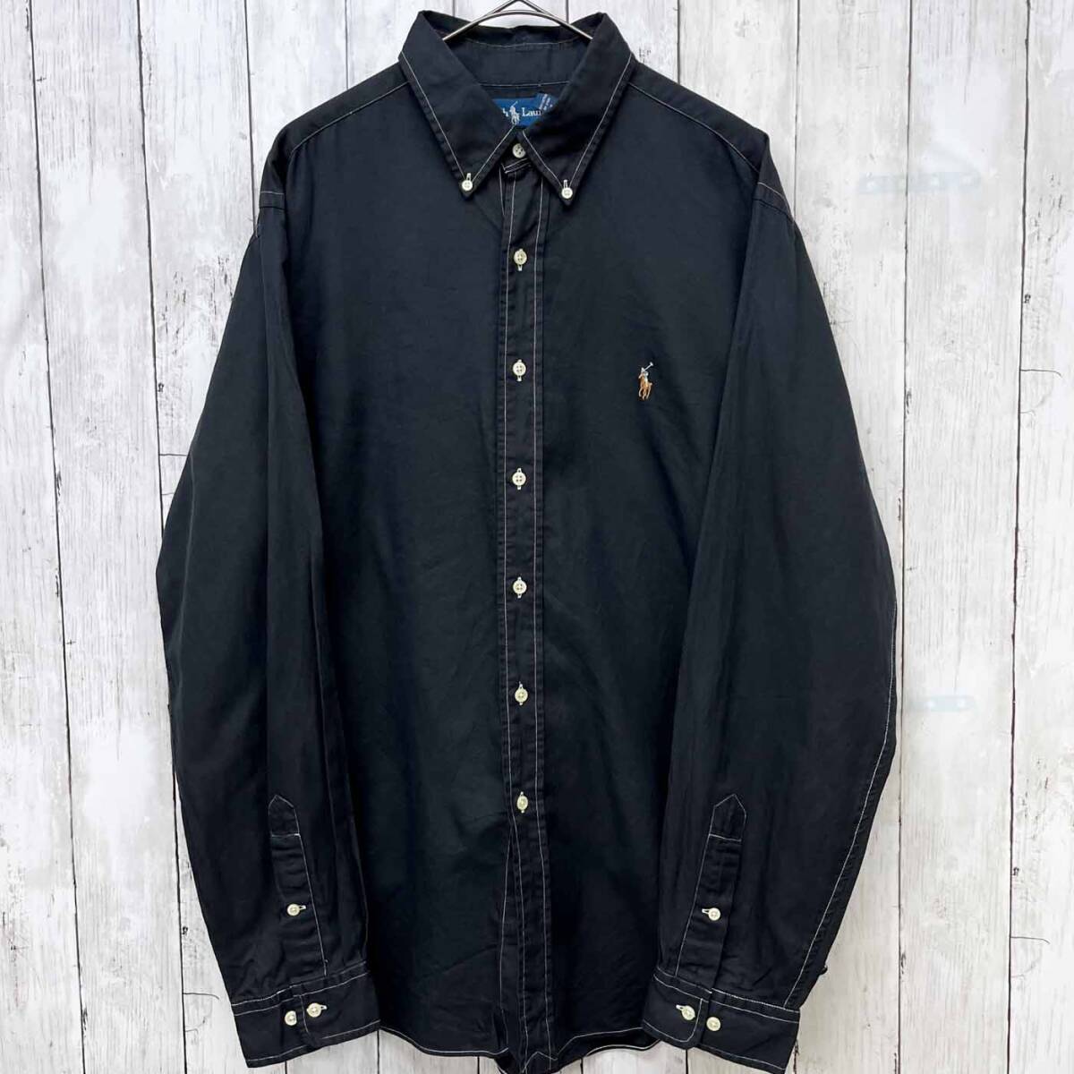 ラルフローレン Ralph Lauren 長袖シャツ メンズ ワンポイント 黒 CLASSIC FIT コットン100% 17 XLサイズ 6-533