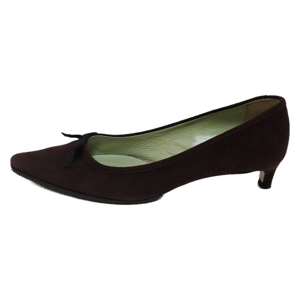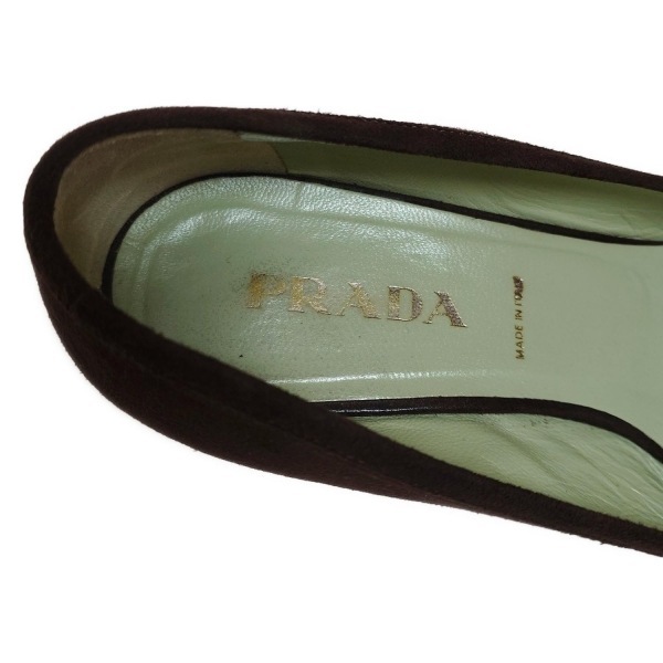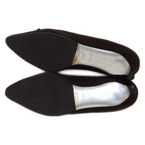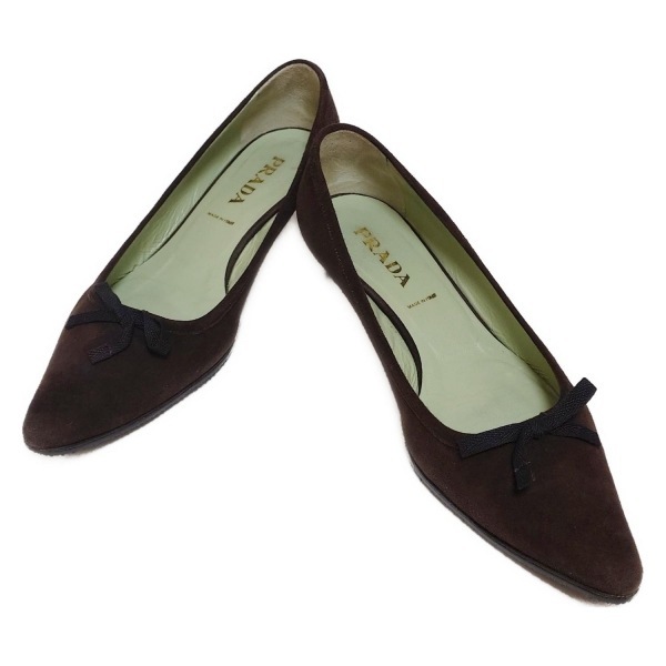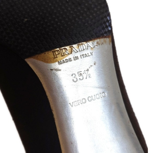 プラダ PRADA パンプス 35 1/2 - ダークブラウン×黒 レディース リボン/アウトソール張替済 靴
