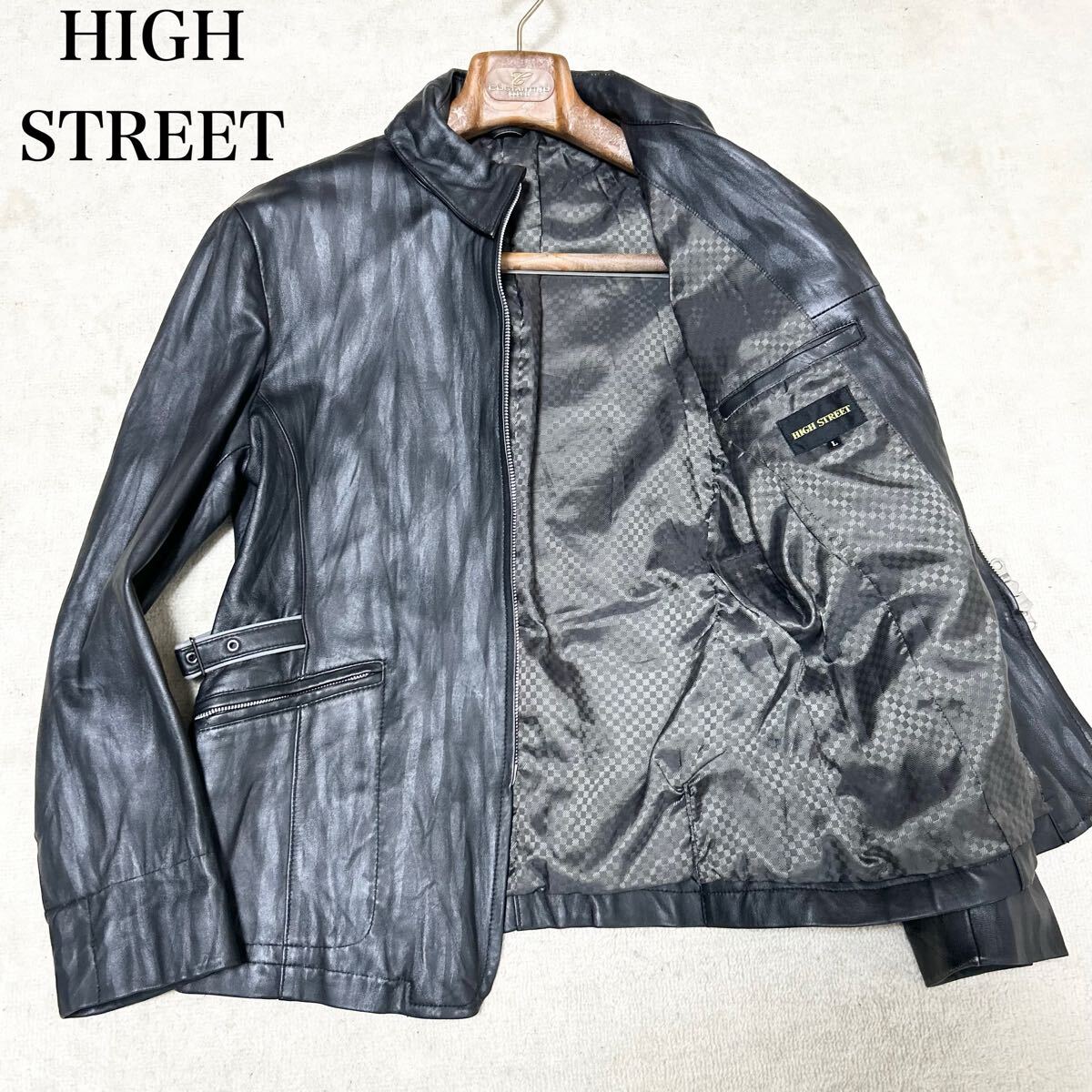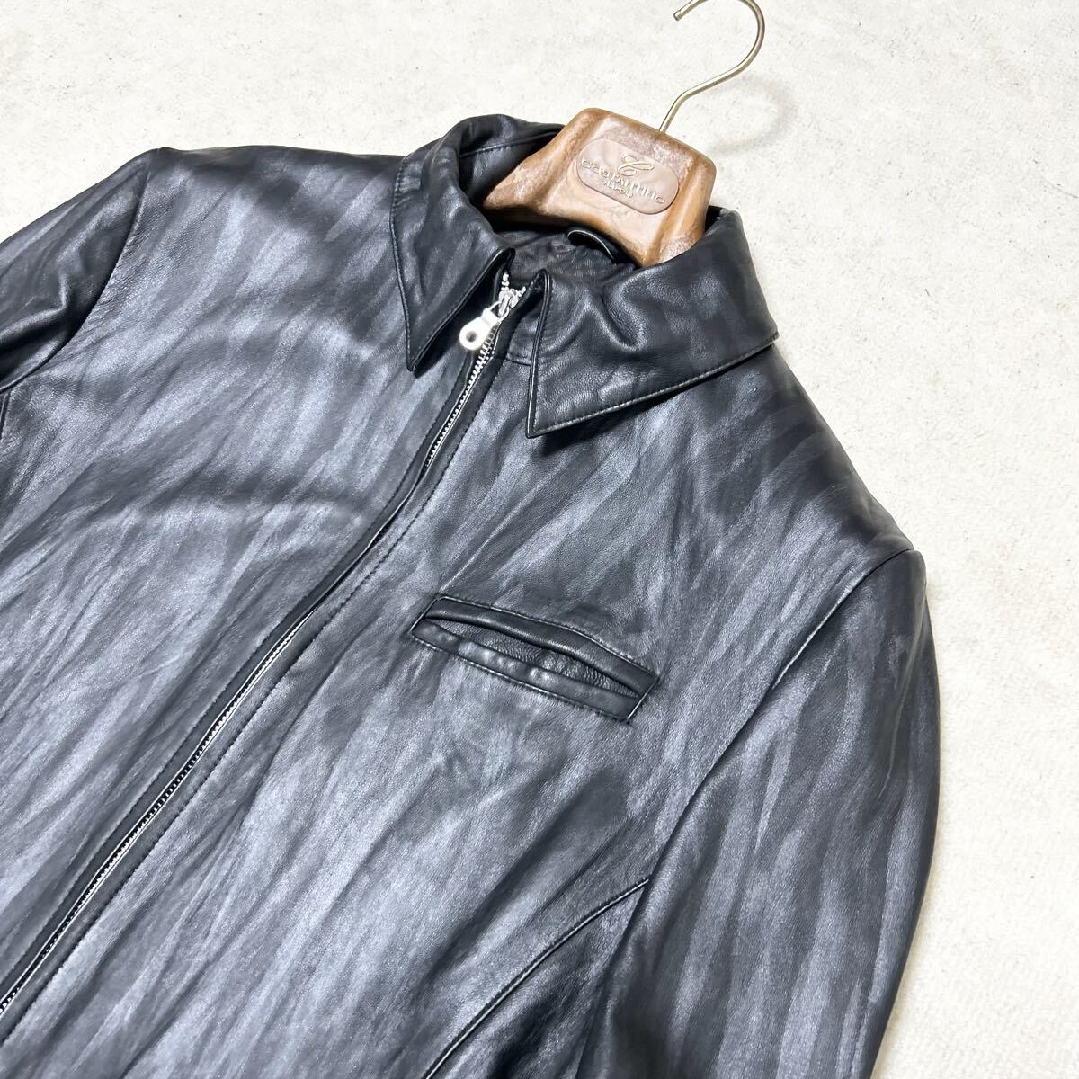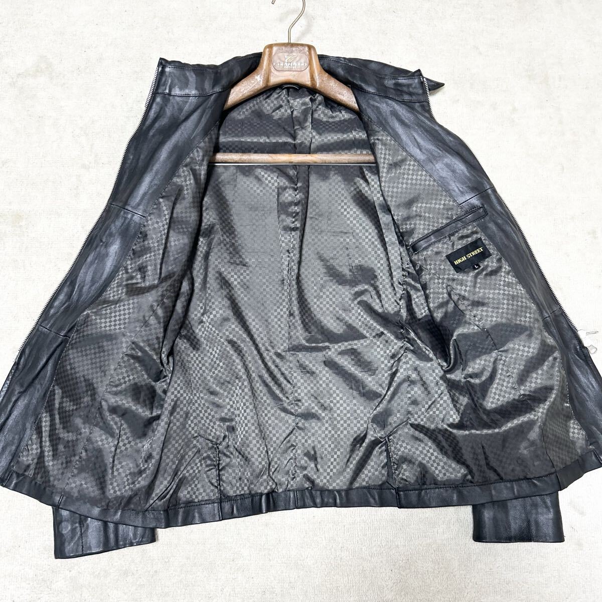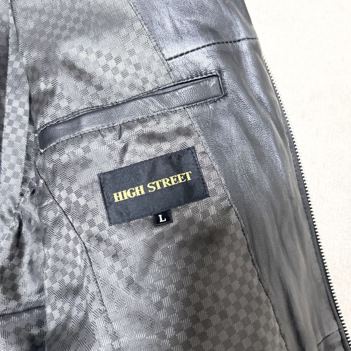 極美品 ハイストリート レザージャケット シングルライダース ラムレザー 羊革 黒 ストライプ HIGHSTREET オールレザー サイドベルト
