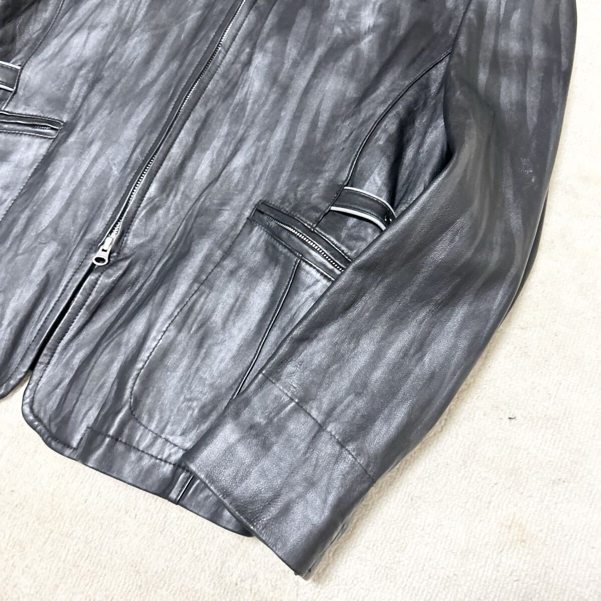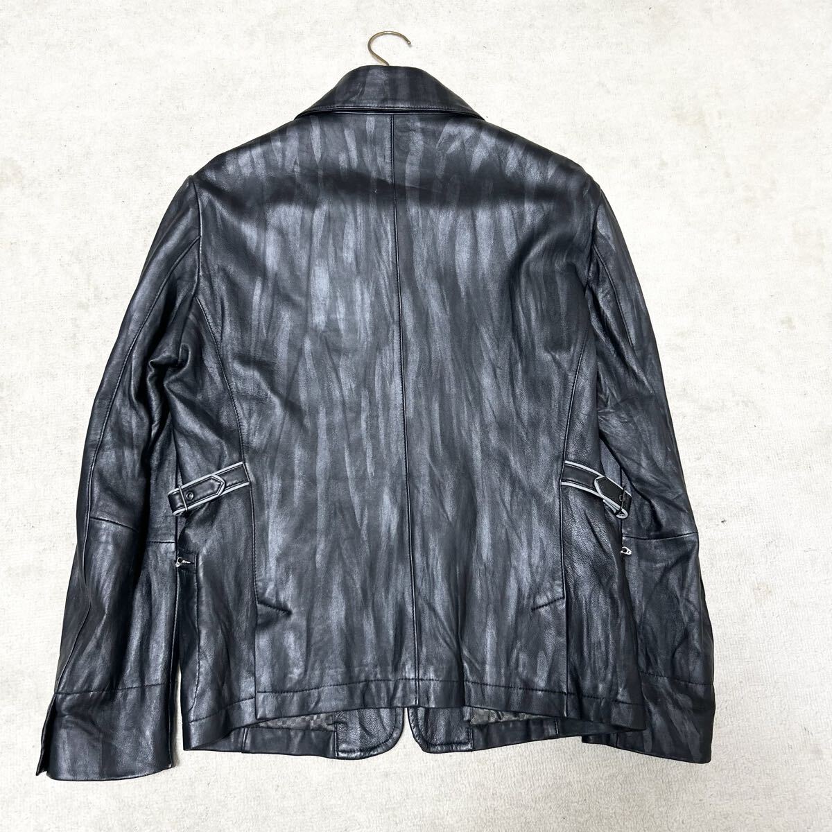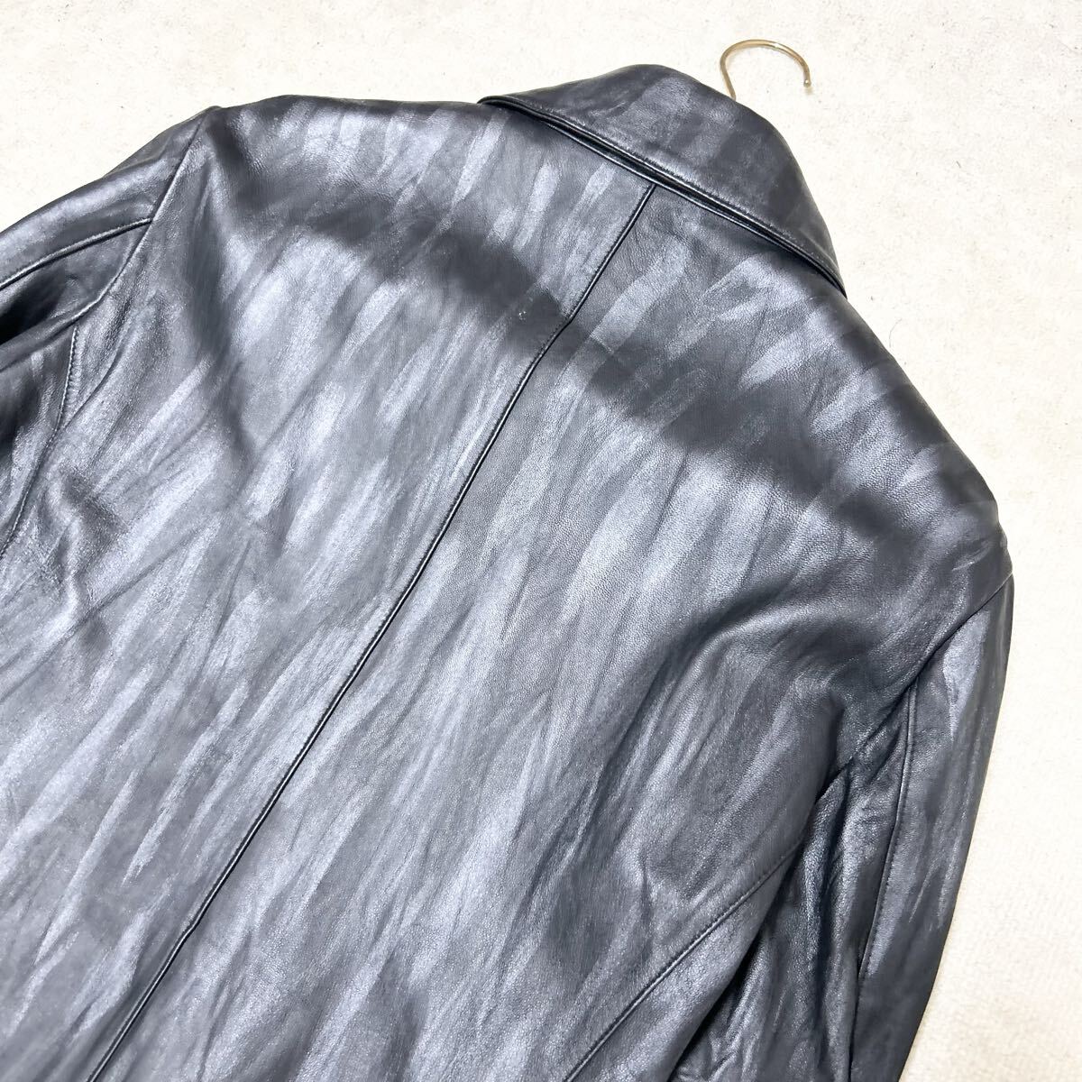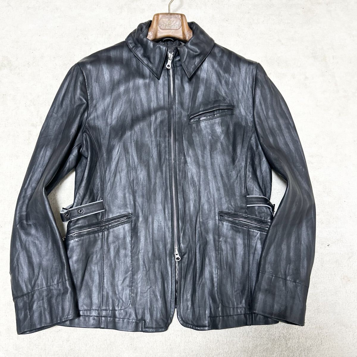 極美品 ハイストリート レザージャケット シングルライダース ラムレザー 羊革 黒 ストライプ HIGHSTREET オールレザー サイドベルト