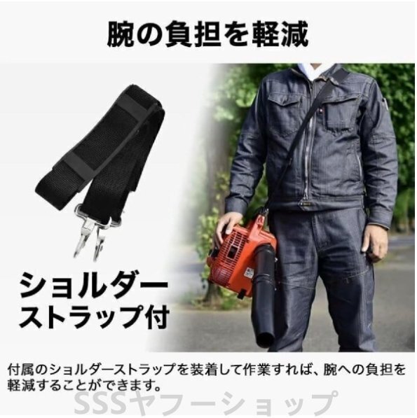 ショルダーストラップ付き。 付属のショルダーストラップを使えば腕の負担も軽減できます。エンジンブロワー