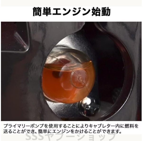簡単にエンジンを始動します。 メインポンプを利用してキャブレターに燃料を送り込み、エンジン始動を容易にします。ブロワー エンジン式
