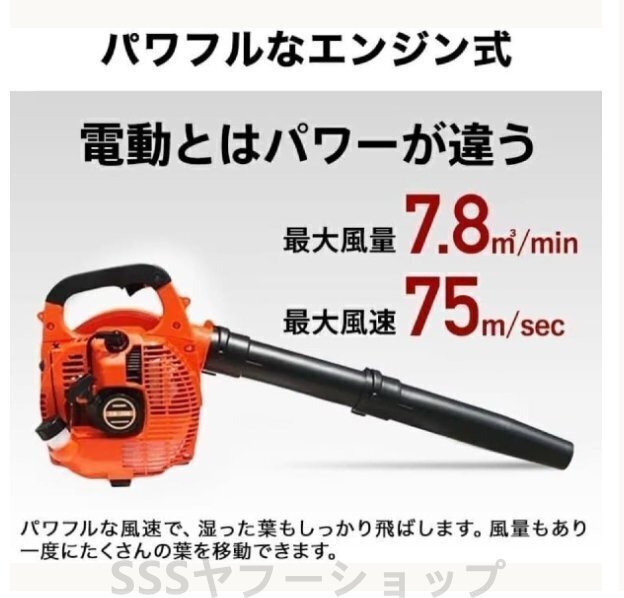 ハンドヘルドブロワー エンジンブロワー コードレスエンジンブロワー 洗車 落ち葉 2ストローク 25cc パワー 7.8m3/分 オレンジ