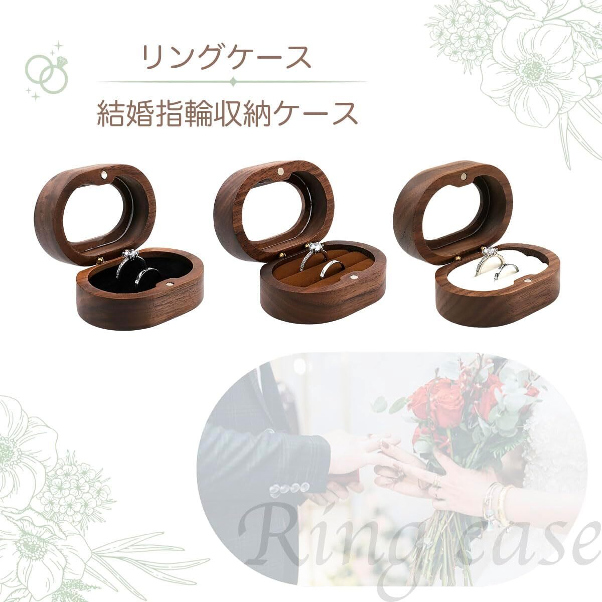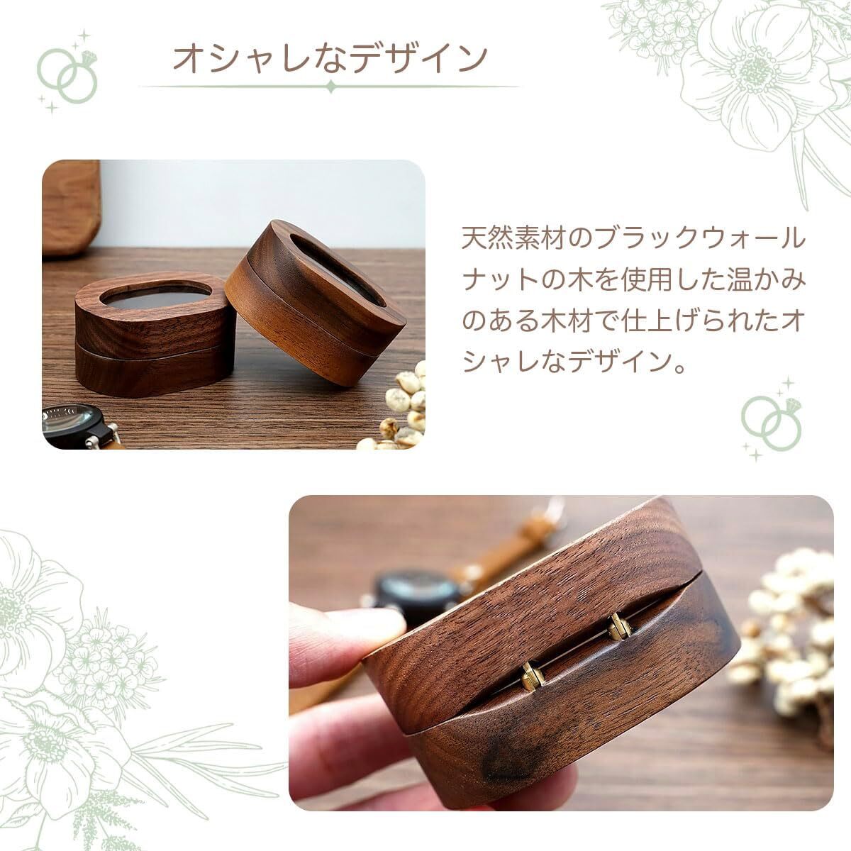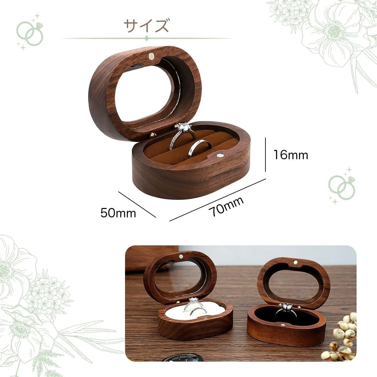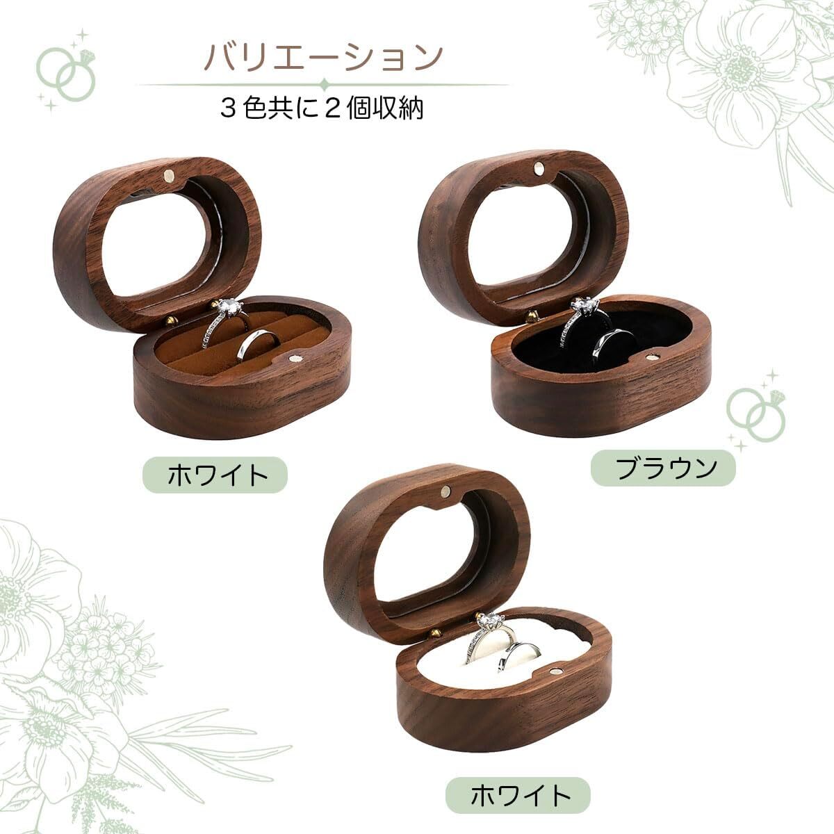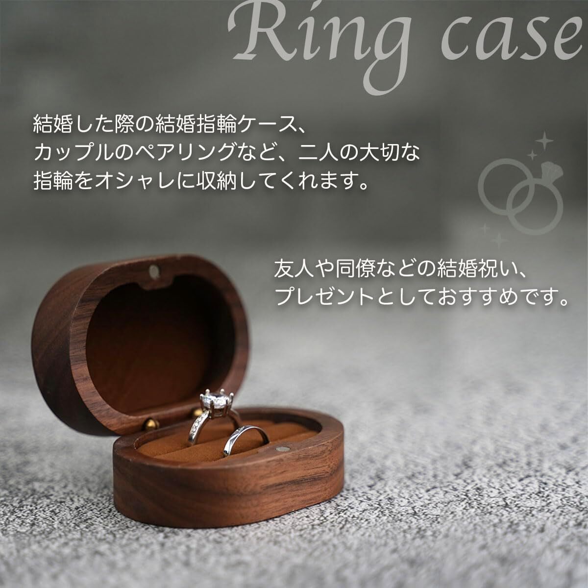 ◆シンプルながらも高級感のあるデザインで、結婚指輪やペアリングを2つ同時に収納することができます。