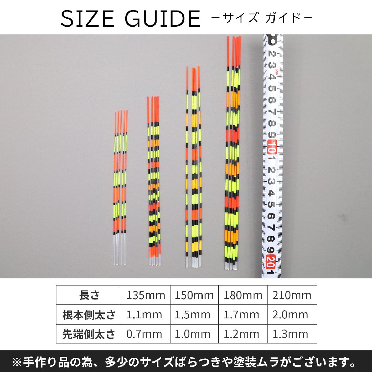 • 【4サイズ】13.5cm、15cm、18cm、21cmの4サイズをご用意。各サイズ太さも異なるため浮力や作成するウキの大きさにあわせてお選びください。