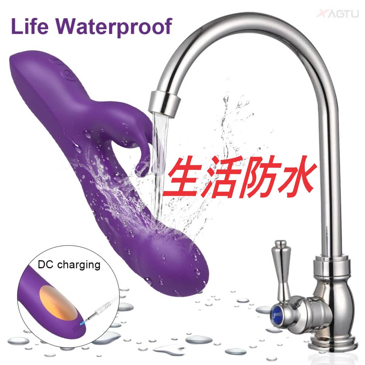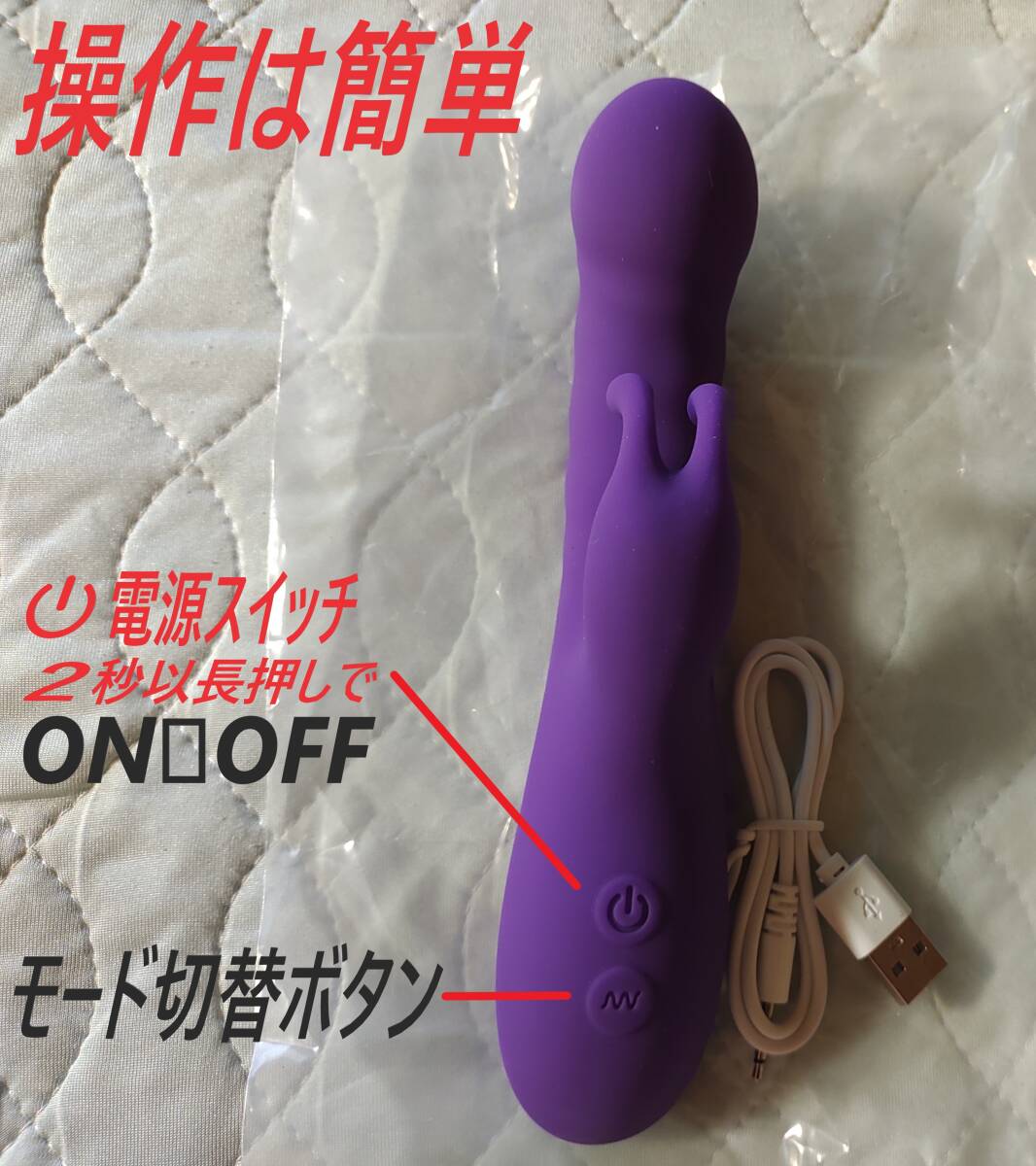 紫のマッサージ器、10バイブレーションモデル、充電器付き