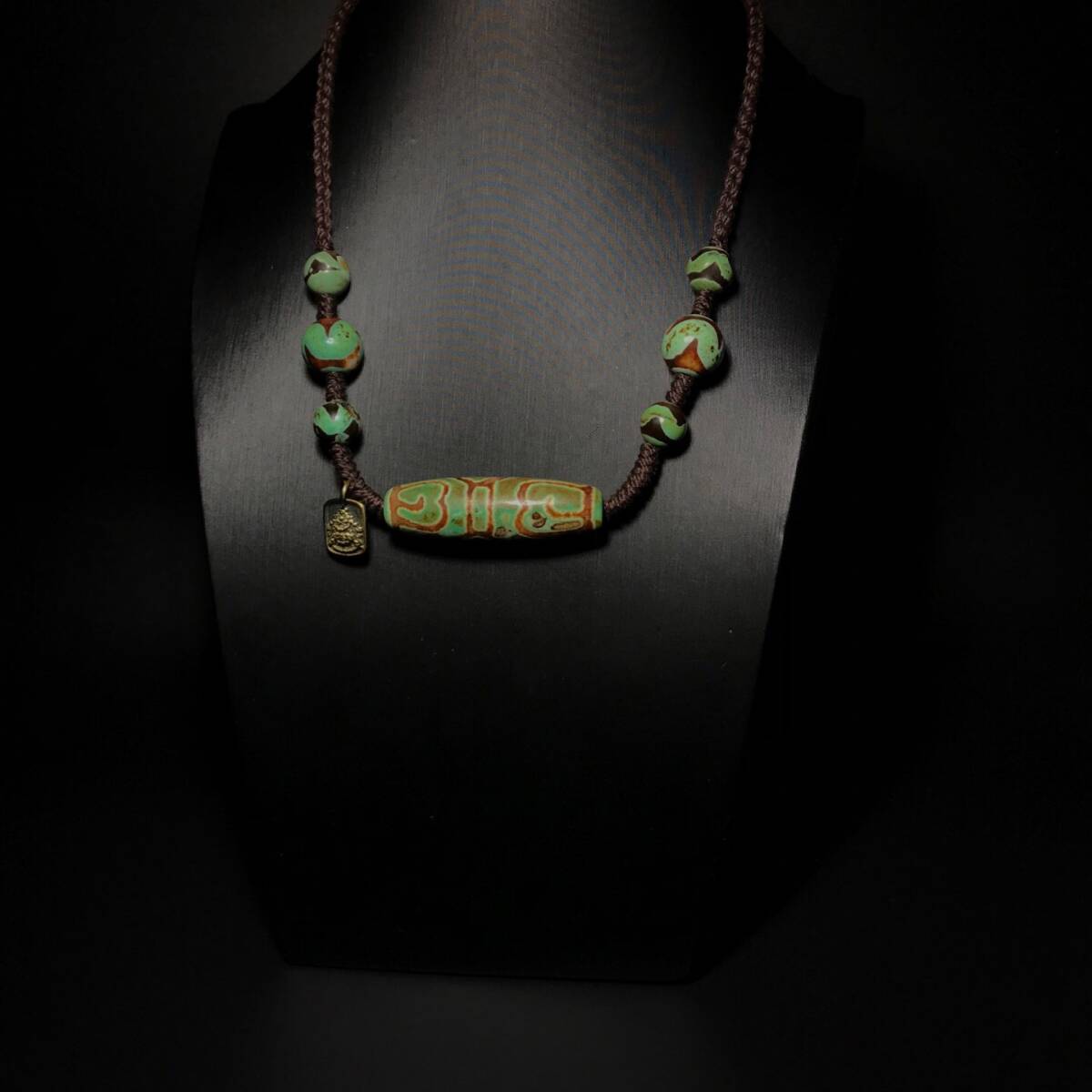 【超珍館蔵】瑪瑙製 細密彫 蓮師法帽天珠鎖骨ネックレス 根付 裝身具 古賞物 古董品 古美術品 時代物 旧家蔵出 稀少珍蔵品