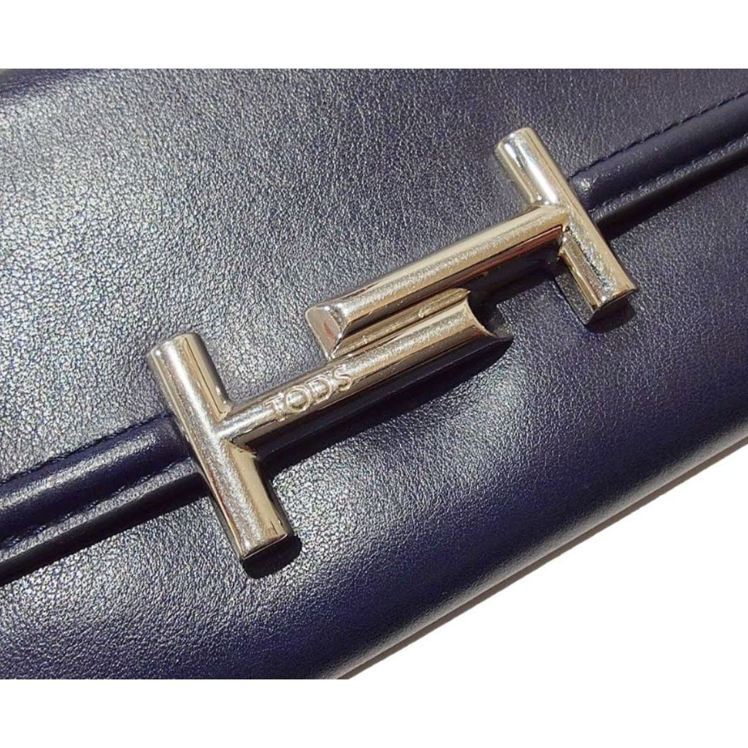 【鑑定済】TOD’S トッズ メタルロゴ ダブルT ロングウォレット 長財布 カーフレザー ネイビー 濃紺【送料無料】