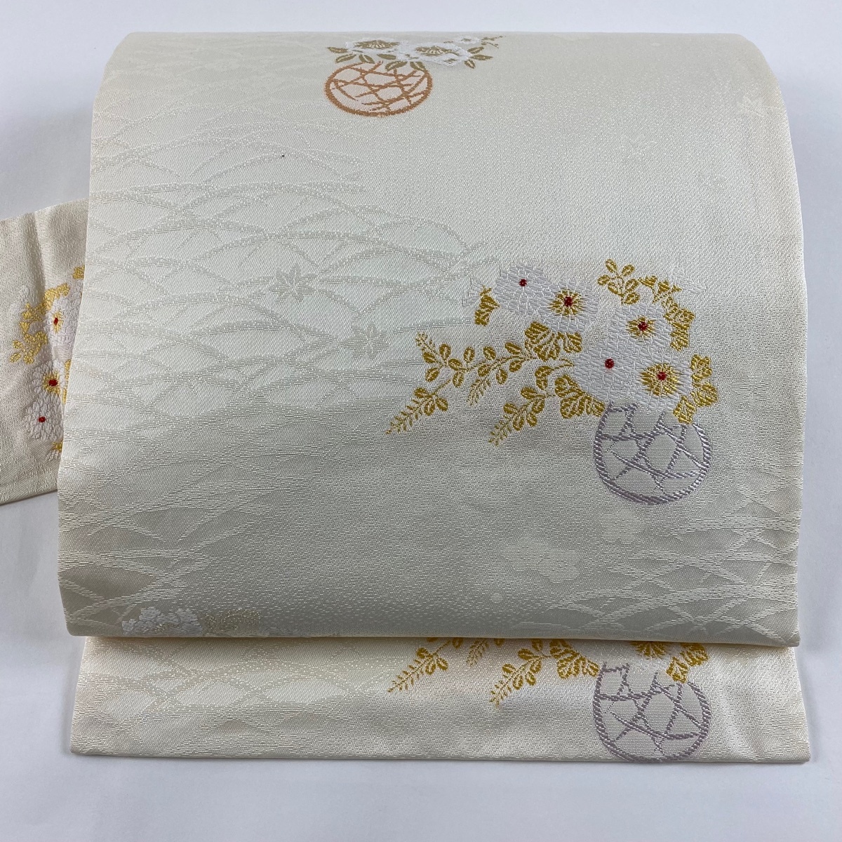 | 名古屋帯 美品 秀品 花籠 芝 クリーム 正絹 【中古】 |