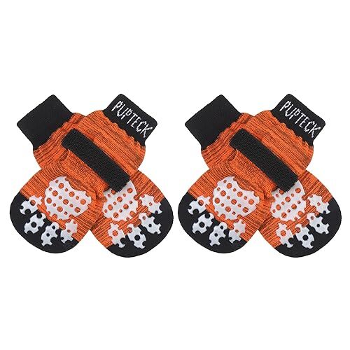「PUPTECK 犬 靴下 滑り止め マジックテープ付き 脱げない 舐め防止 肉球保護 通気性 柔らかい 介護 サポート 転倒防止 犬用靴下 4個」▼▼(商品説明)オレンジ/L/PUP002・PatternName:オレンジSize:L・??サイズ購入前にペットの足を測定し、サイズ表をご確認ください。もし犬の足幅が2つのサイズの間で迷っている場合は、少し小さいサイズを選ぶことをお勧めします。サイズはXSからXLまでの5種類があり、小型犬から大型犬まで対応しています。・??犬用靴下の機能犬用靴下は、犬の足元に優れたトラクションを提供し、鋭い爪から家具(フローリング、木製テーブル、ソファなど)を守ります。また、暑い舗装や冬の寒さから犬の足を保護し、痛みや擦り傷を防ぎます。さらに、爪の裂けや傷を防ぎ、舐めるのを防止するもあります。これらの靴下はシニア犬にも最適です。・??両面滑り止め靴下の両面には、足型グリップが施されており、滑りやすい床を歩く際に安定性を提供します。靴下がねじれても滑り止めは変わらず、両面グリップデザインにより、靴下の耐久性が向上します。一方のグリップが摩耗しても、反対側を使用することで、長期間滑り止めを維持できます。・??高品質な素材当社の靴下は非常に柔らかく、快適な触り心地で、弾力性