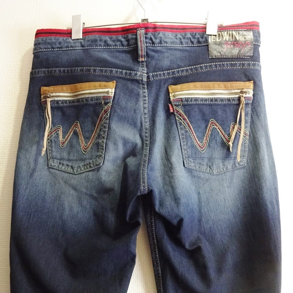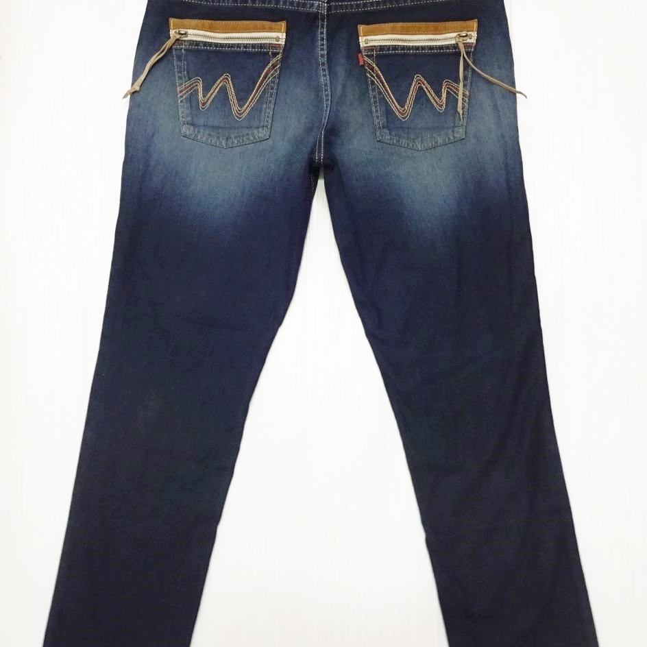 ◆バックポケットは、フェイクレザーをあしらったジップポケット。ウエスタンディティールとカラフルなWステッチが、強烈な個性を放つデザイン。
