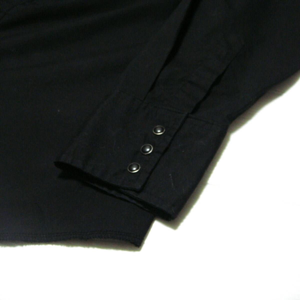 【 見てくださり 感謝します 】 【ブランド】 Wrangler / ラングラー ウエスタンの老舗 ラングラー ■ ロデオスナップ シャツ ウエスタンシャツ フロントヨーク & バックヨーク 黒 無地 アメリカ古着 USA製ではありません ■ v(^-^)v ■ サイズが合う方は、 是非!是非!!ゲットしてやって下さい (^-^)v 【表記サイズ】 USAサイズの XLT XGA TGL 日本サイズ XXLぐらいです 【実寸】 肩幅 56cm (左肩ステッチ〜右肩ステッチまで計測) 身幅 66cm (脇あたりで計測) 着丈 91cm (バック襟の付け根から計測) 袖丈 68cm (肩からの計測) 素人採寸です。多少の誤差はご了承下さい! 【素材】 コットン 55 % ポリエステル 45 % % 【状態】 USED 襟先 ・ 襟内 ・ 袖口 に擦れはありません (写真)。 【 見てくださり感謝いたします 】 ↓ よろしければ、青字を クリックして下さい。 ご覧いただければ幸いです。 ■リーバイスデニムとウエスタンシャツを中心に出品させていただいています。 ■ウエスタンシャツは、ラングラーのレギュラータイプからビンテージまで幅広く出品中 ご覧いただければ幸いです。 ↑ よろしければ、青字を クリックして下さい。 o9 | ||||