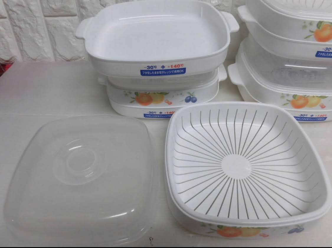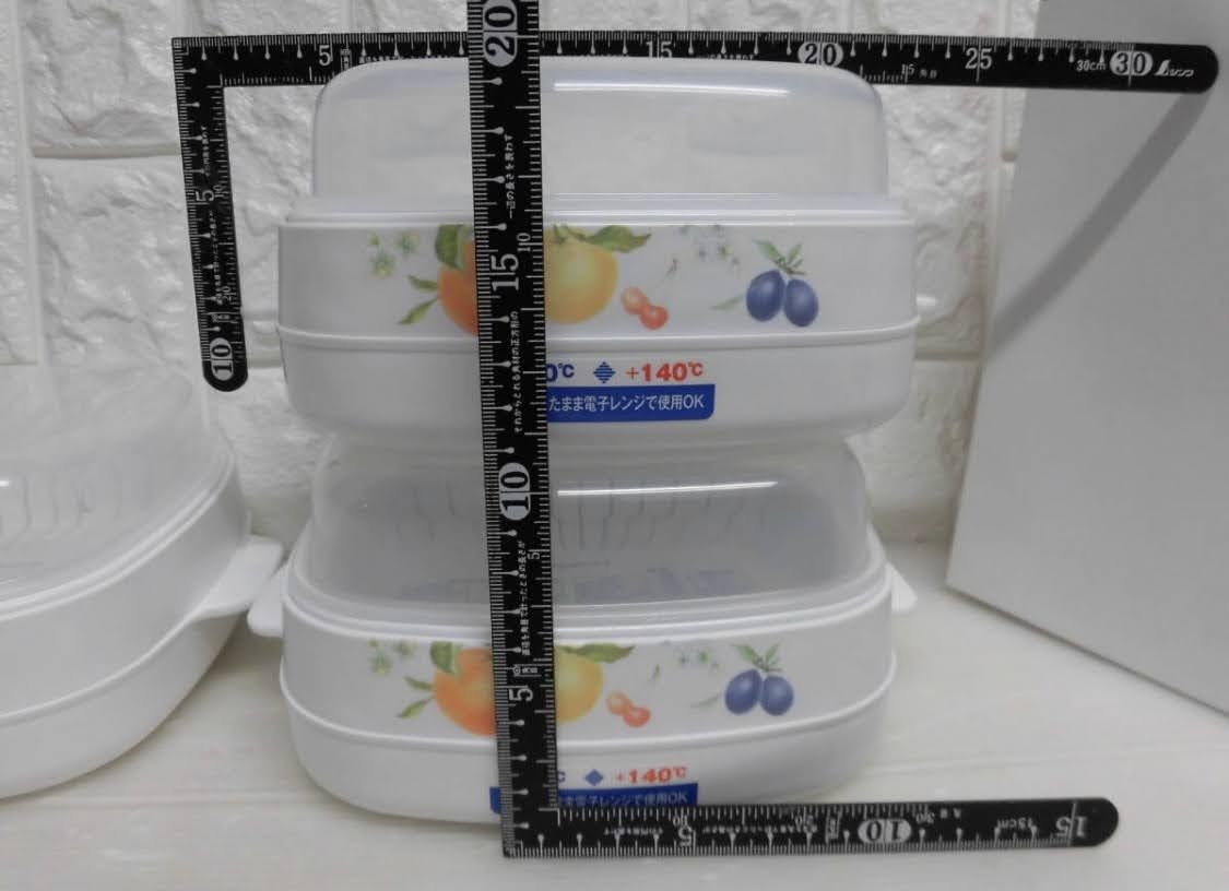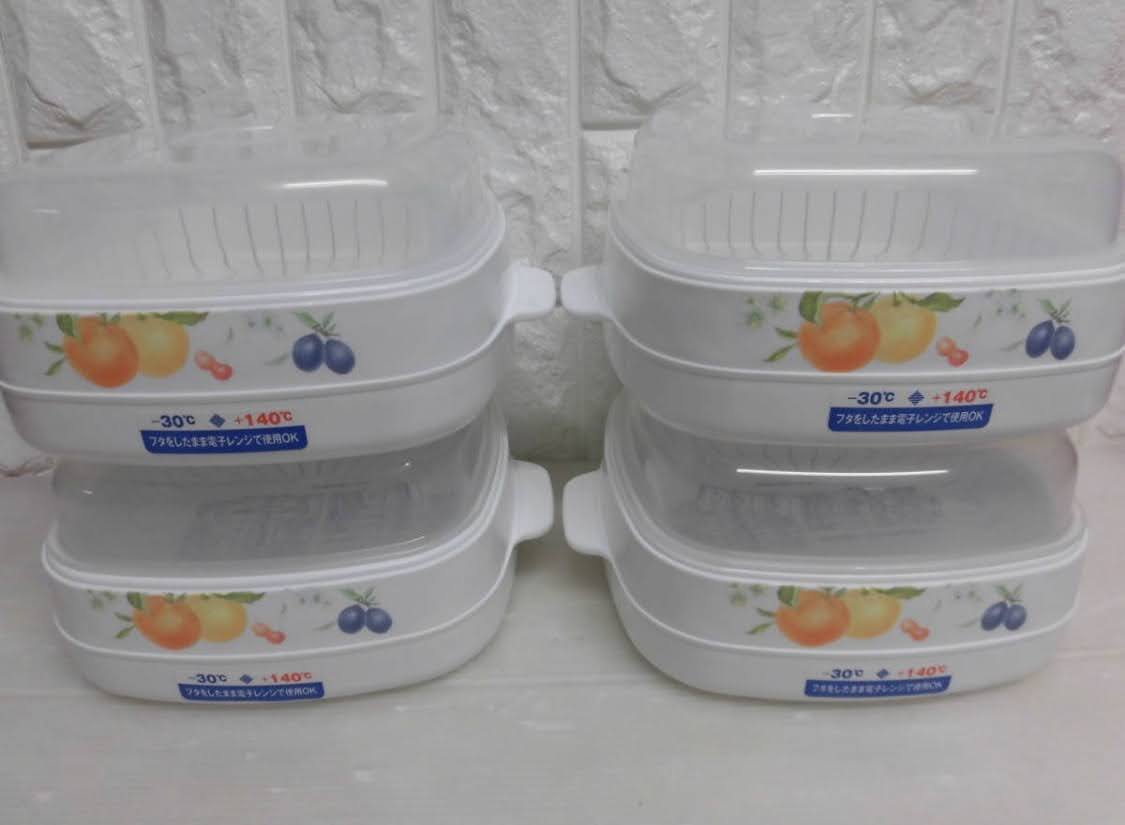 FF-21/新品 4ヶセット ヘルシー調理 フルーツ柄 角型 蒸し器 電子レンジ調理器 飲茶 温野菜 保存容器 まとめ売り