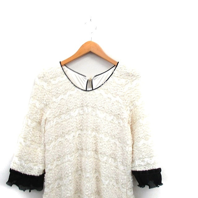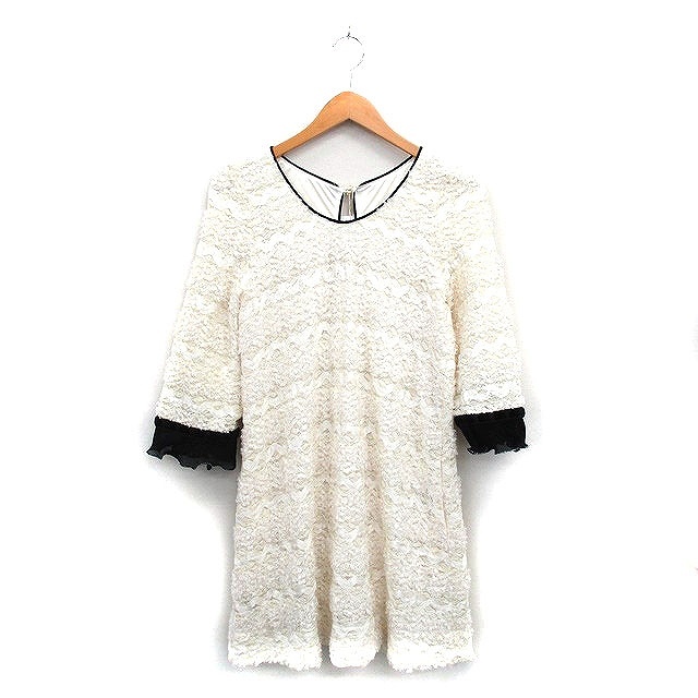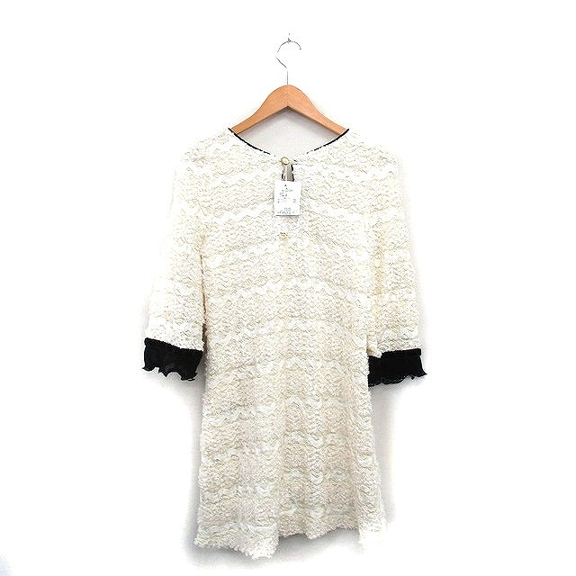 未使用品 ランゲージ Language タグ付き ワンピース 七分袖 ミニ 38 アイボリー 白 /KT35 レディース
