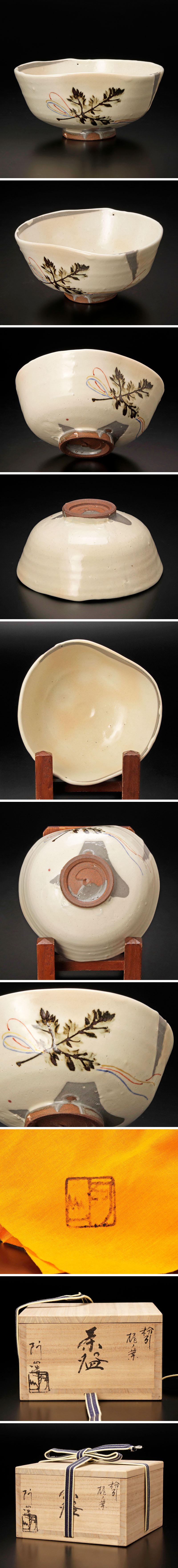 | 【古美味】通次阿山造 粉引梶ノ葉茶碗 茶道具 保証品 |