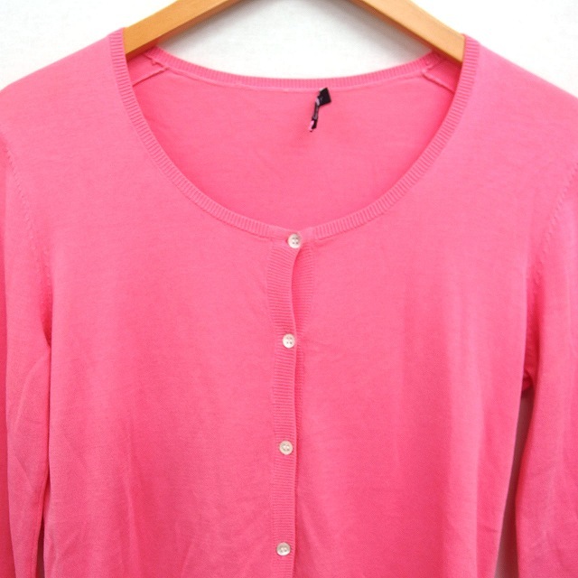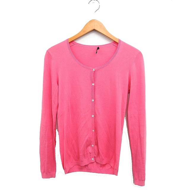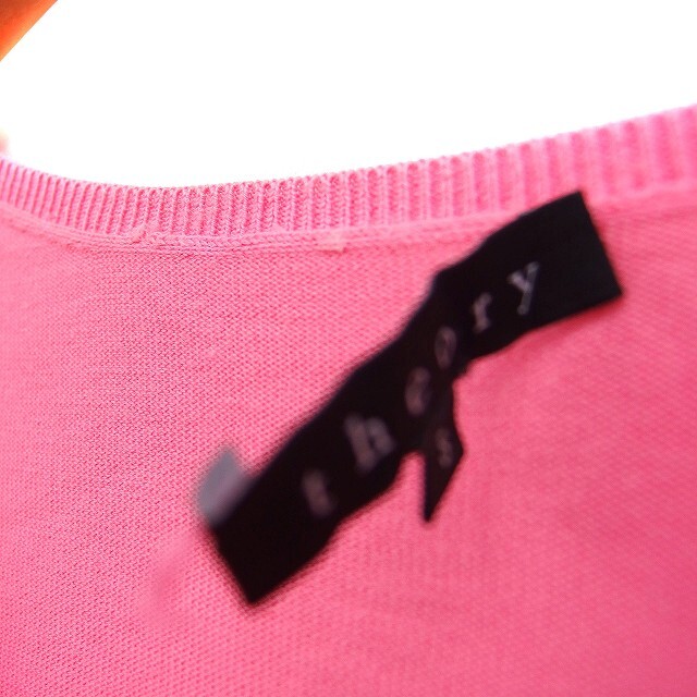 セオリー Theory コットン ニット カーディガン 丸首 無地 S ピンク /FT31 レディース