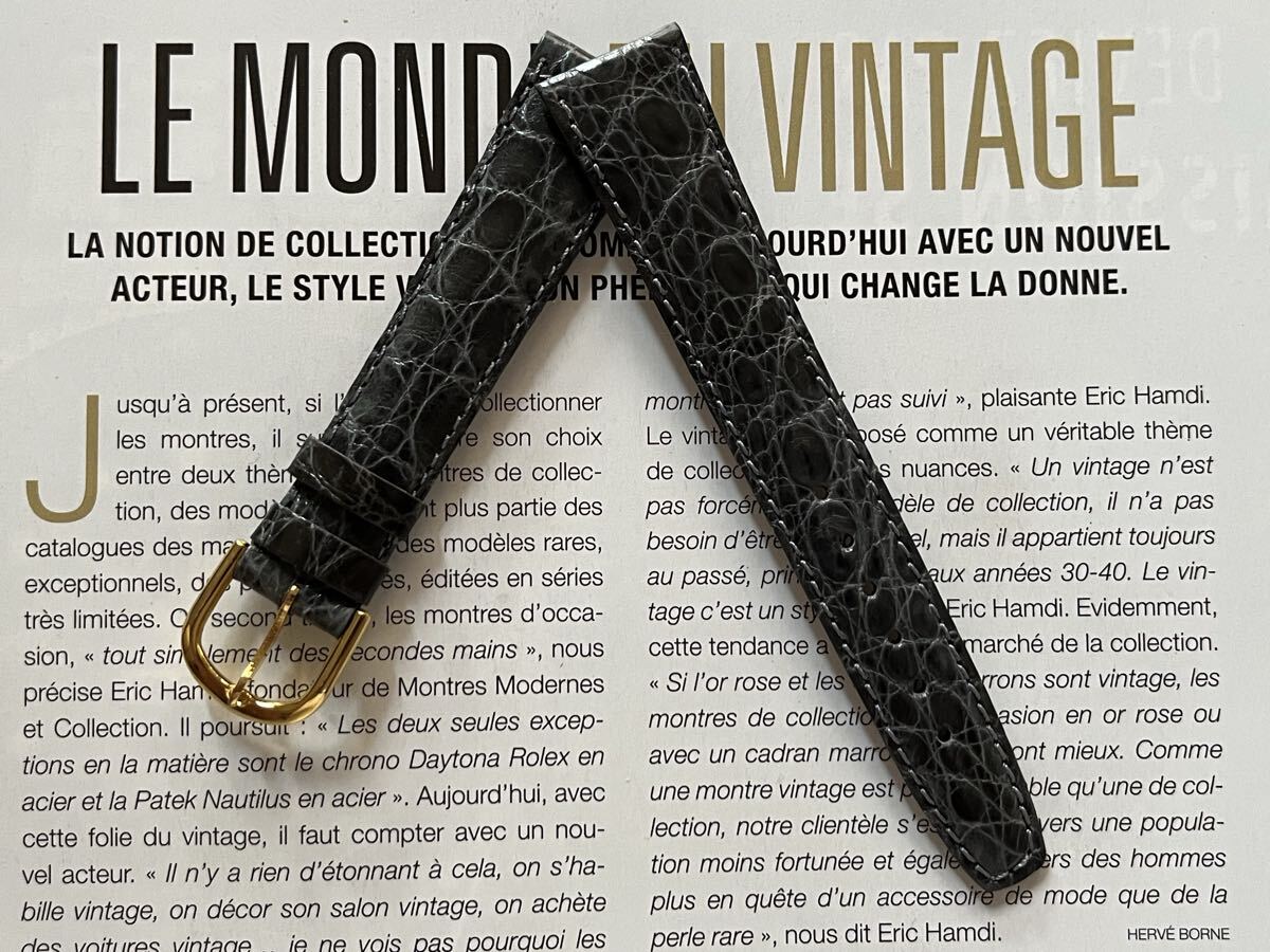 ◆デッドストック品 ヴィンテージ グレー 18mm リアルクロコ