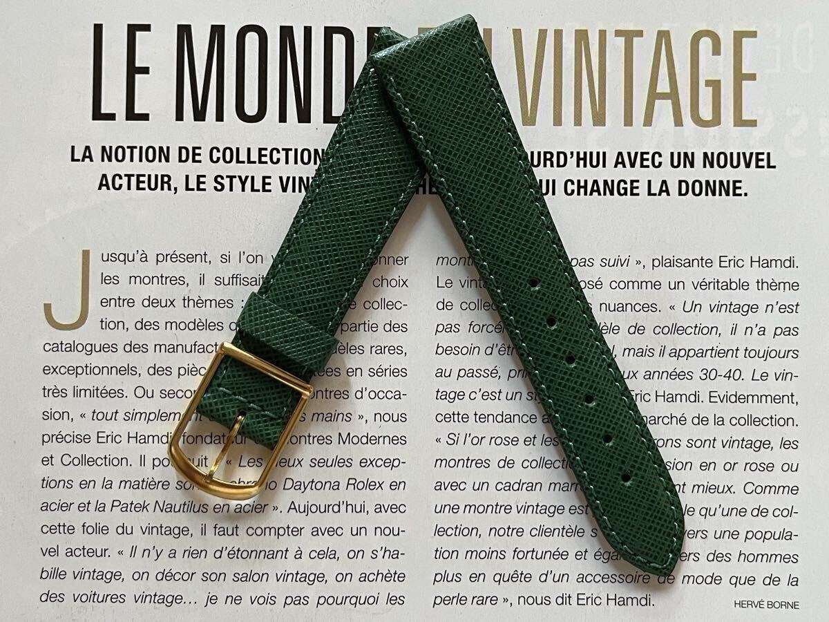 ◆デッドストック品 ビンテージ グリーン サフィアーノレザー 20mm リアルレザー