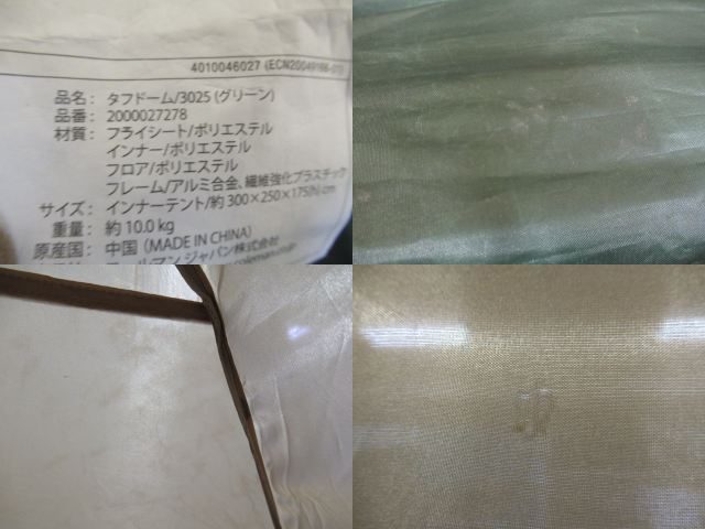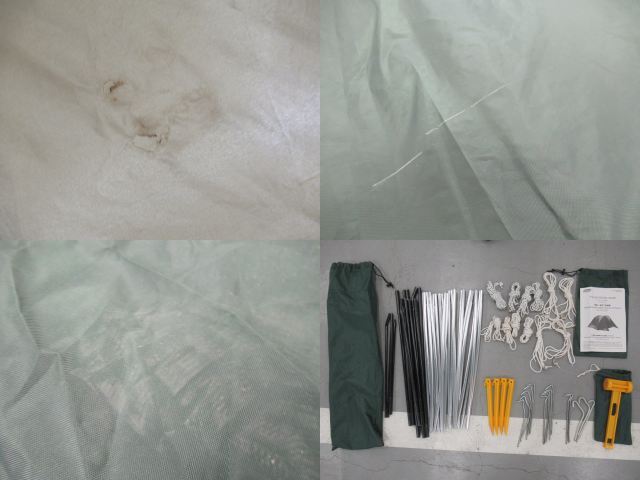 汚れ、シーム浮き箇所あり・入口下部に細かい穴が複数あり・内側天井付近にコーティング剥がれ箇所あり