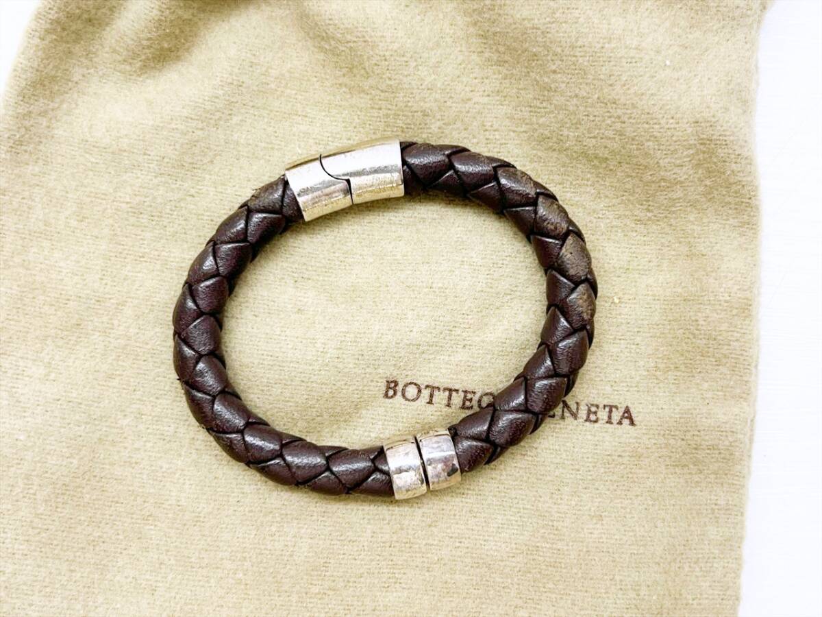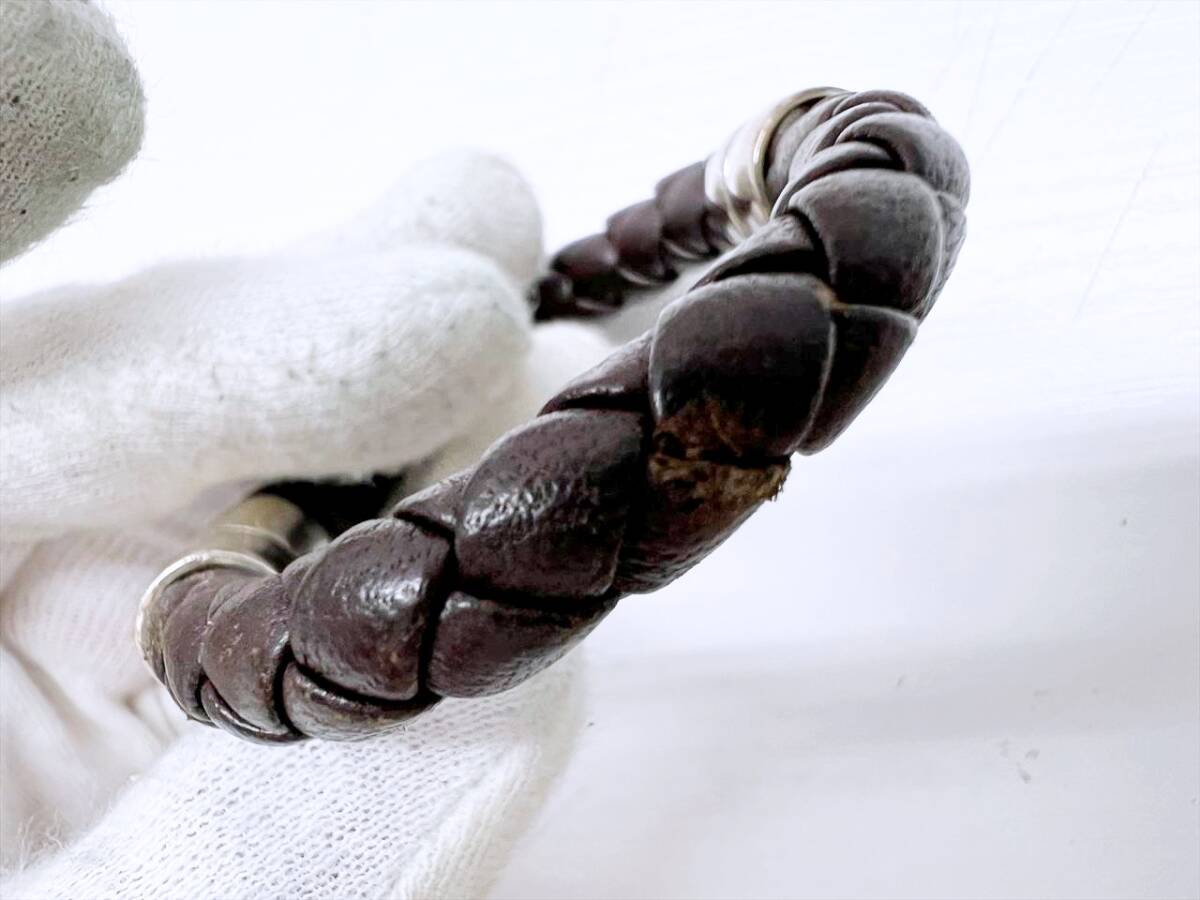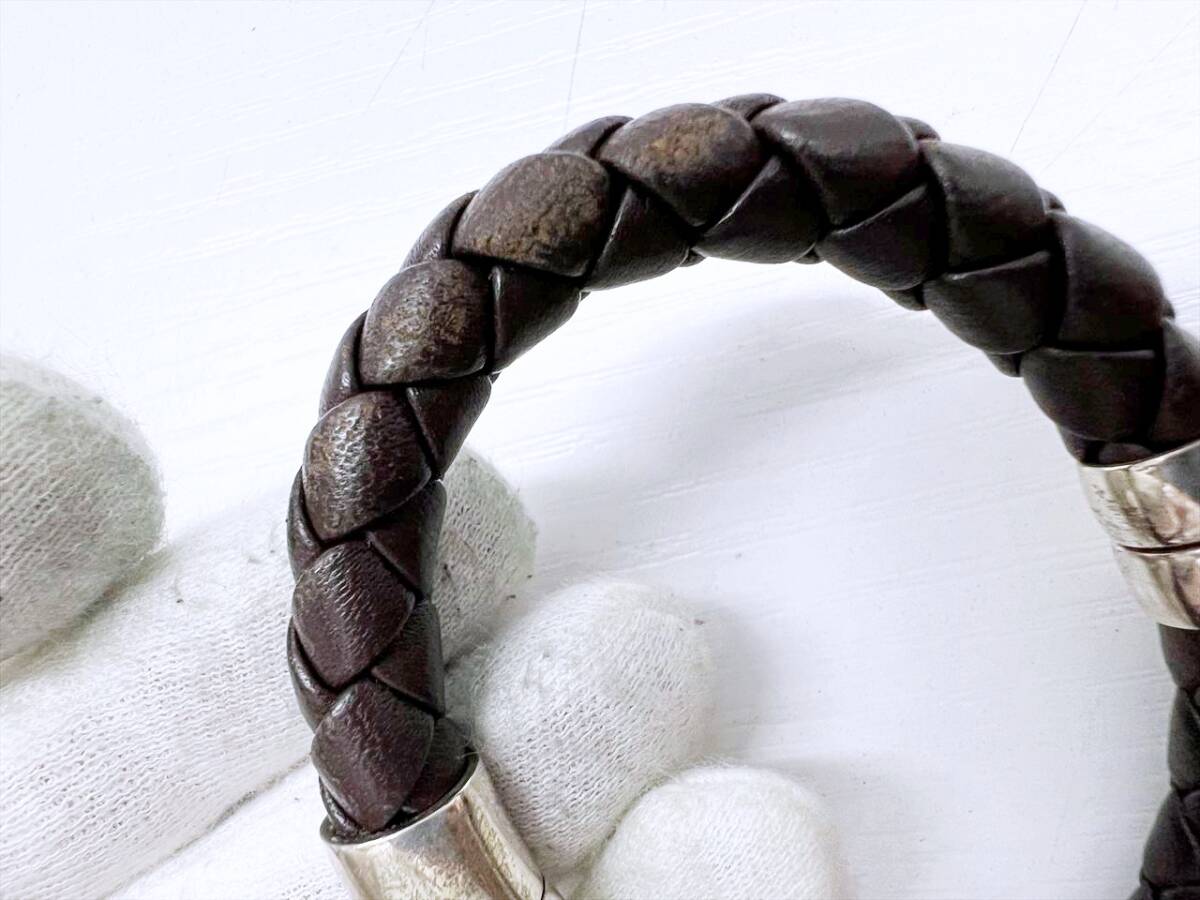 Bottega Veneta ボッテガヴェネタ イントレチャート 925 レザー ブレスレット ブラウン シルバー