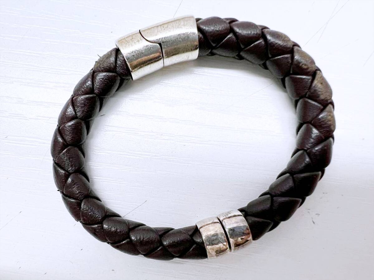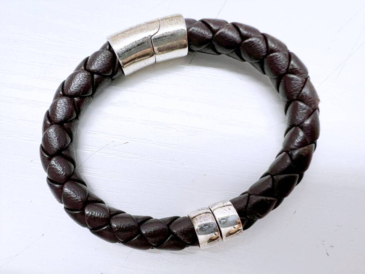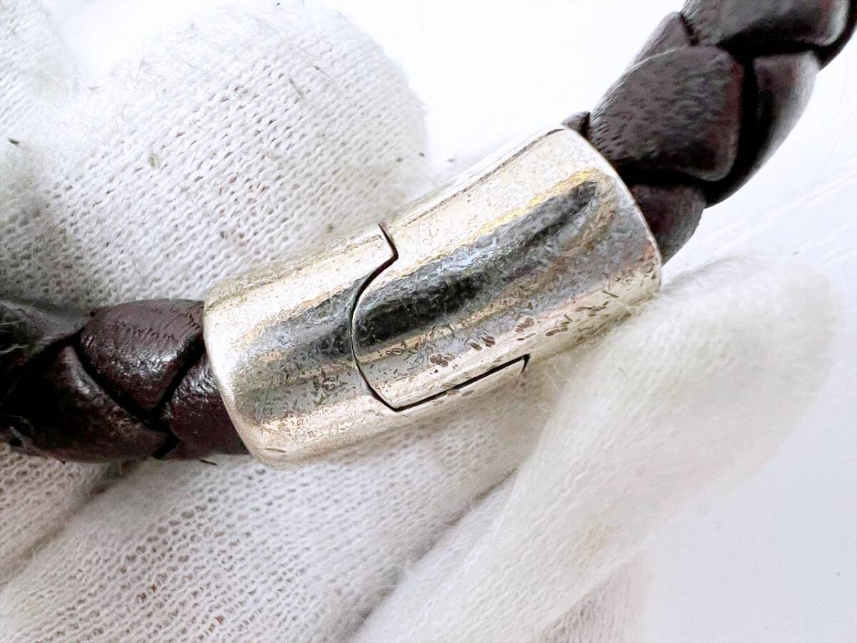 Bottega Veneta ボッテガヴェネタ イントレチャート 925 レザー ブレスレット ブラウン シルバー