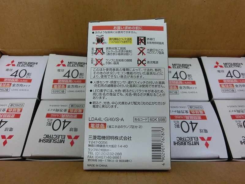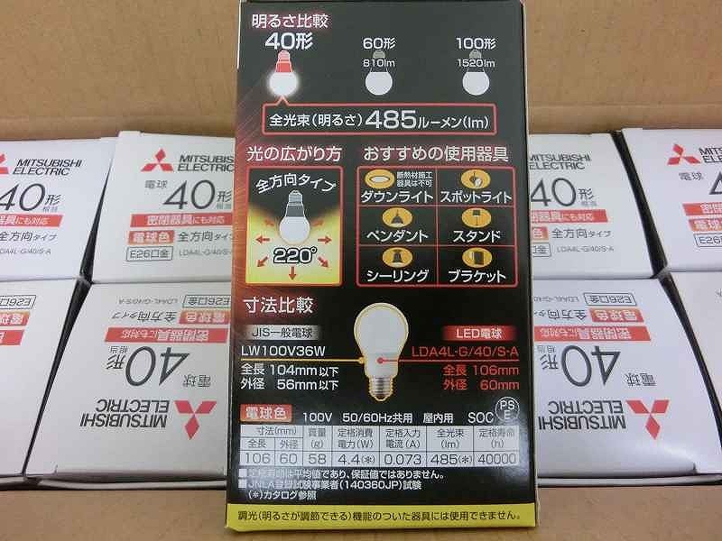 【未使用】 三菱 MITSUBISHI LED電球 E26 電球40W形相当 電球色 10個セット LDA4L-G/40/S-A