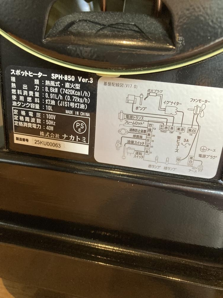 ナカトミ ■商品名 ジェットヒーター ■型番 SPH-850 |