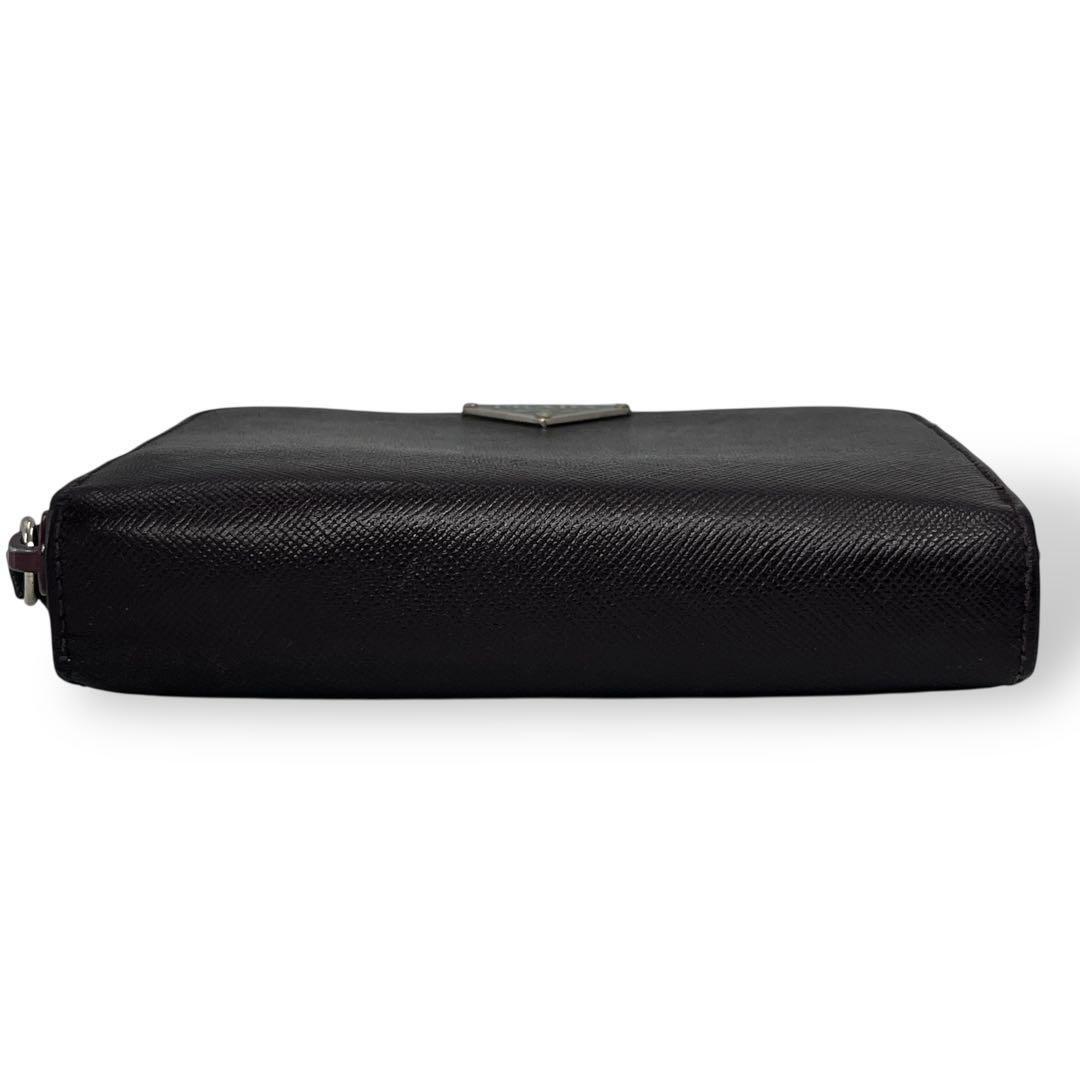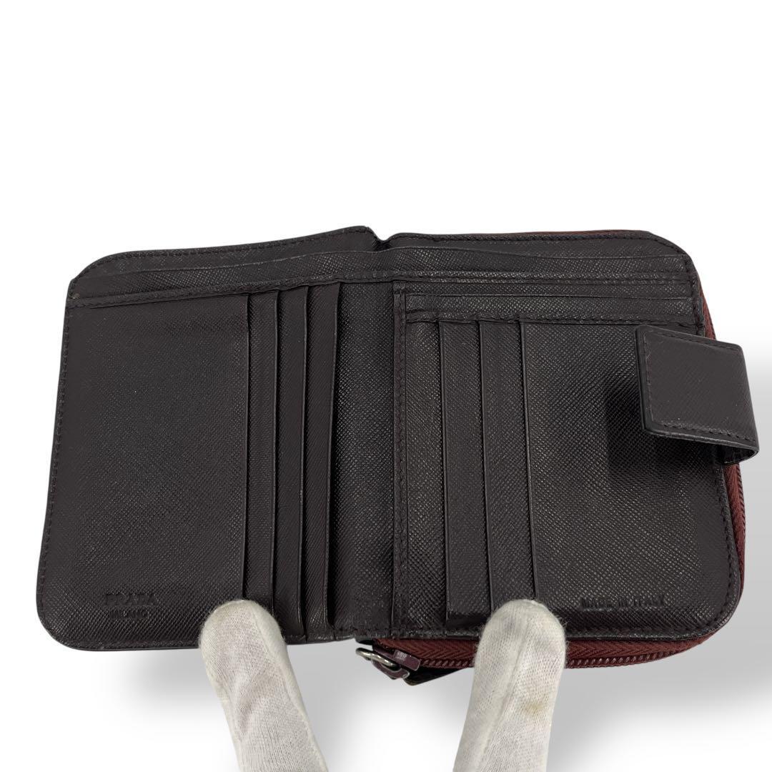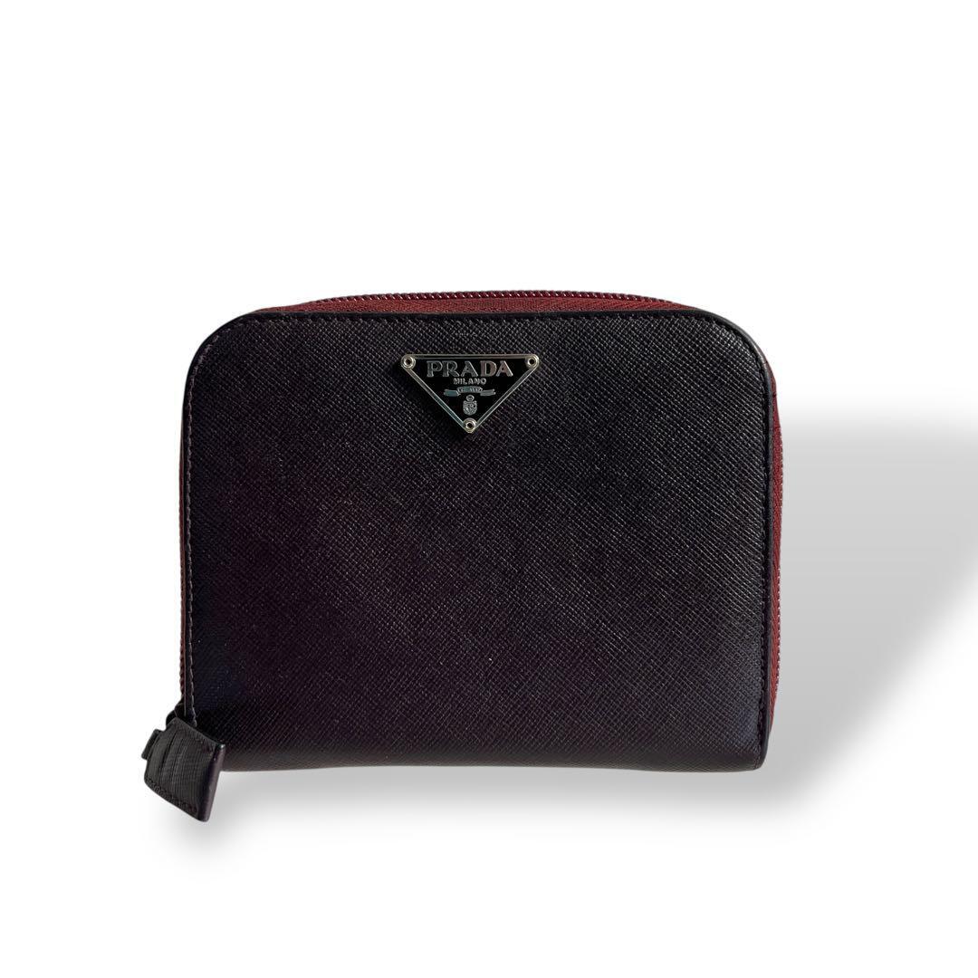 PRADA ラウンドジップ 三角ロゴプレート トライアングルアイコン 型押しロゴ ロゴ型押し シルバー金具 男女兼用 ユニセックス コンパクトウォレット 折り財布