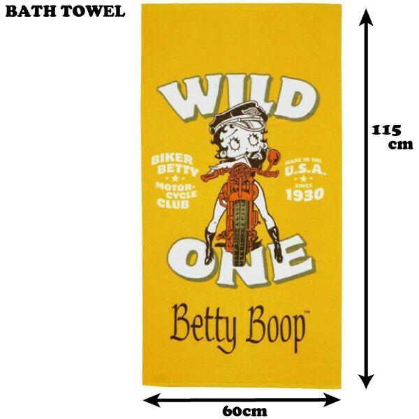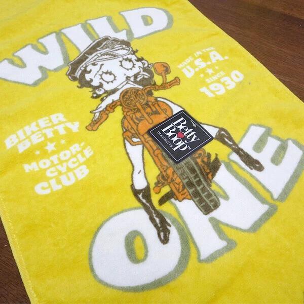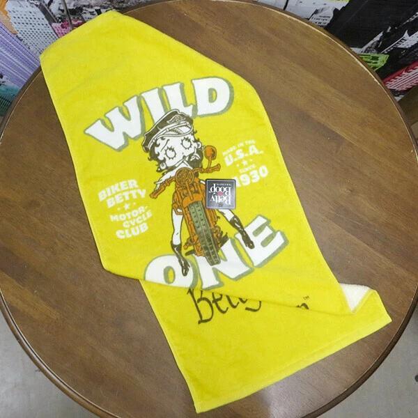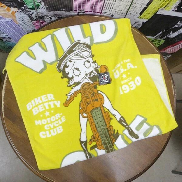 Betty Boopのバイカーイラストが特徴的なイエローバスタオル & フェイスタオル セット
