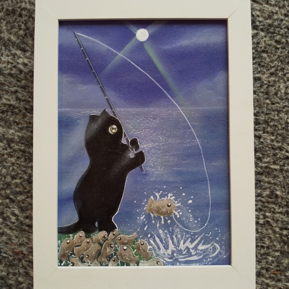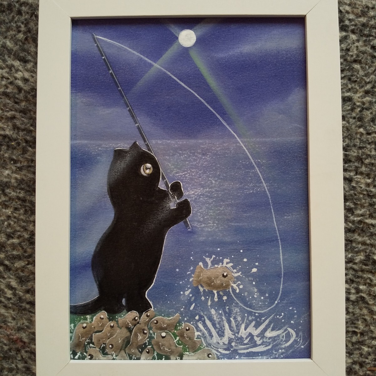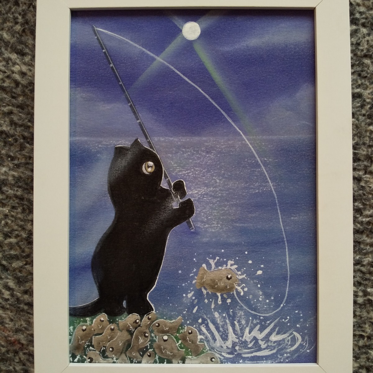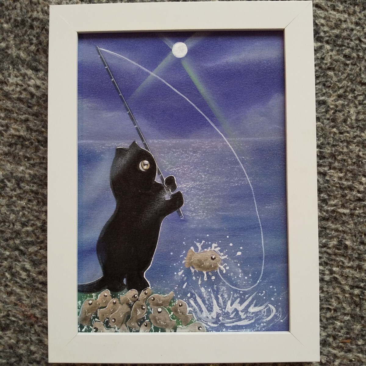 #猫アート #ちゅーる #猫のグッズ #釣り #魚 #絵#インテリア#風景画#スケッチ#プレゼント#飾り#絵画#お土産#ハンドメイド#アート#絵描き#パステル#画材#美術#オリジナルイラスト#海の絵#空の絵#パステル画#パステル#イラスト