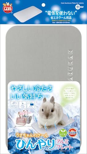 「ミニマルランド うさちゃんのクールひんやり アルミプレート」▼4906456550198▼(商品説明)-/無し/4906456550198・パッケージ個数:1・電気を使わない省エネクール用品商品紹介 ・ペットの暑さ対策、夏バテ対策にピッタリのアルミ製プレートです。 ・汚れがつきにくいアルマイト加工で、お手入れが簡単で清潔です。 ・水も電気も使わないので、安全で経済的。高純度アルミを使用しています。(アルミニウム純度99.5%以上) ・裏面にはパッドつき。床面をキズつけず、すべりにくくて安心。プレート裏面からの放熱も高めます。 使用上の注意 本品は小動物用クール用品です。それ以外の用途には使用しないでください。熱伝導性の高い商品ですので、以下の条件では使用しないでください。(直射日光下/ペットの体温(約38℃)以上になる場所/風通しの悪い場所/多湿/冷房機器の影響を直接受ける場所)持ち運びなどの取り扱いには十分に注意し、足の上・ペットのからだなどに落とさないようにしてください。プレート周囲は面取り処理をしていますが、ケガのないようにしてください。事故・破損などを避けるため、以下の事柄を守ってください。(壁・家具などに立てかけないでください/人がのったり・踏んだりしないでください/お子様・ペットがいたずらしないようにしてください/過度の重量・力・衝撃を加えないでください)火気・暖房器具のそば、不安定な場所には置かないでください。破損・変質・変形したときは使用を中止し、お住まいの地域の分別方法に従って廃棄してください。その他記載事項を守り、安全に使用してください。製造・加工には細心の注意をはらっておりますが、アルミ素材のため、製造・加工中に若干のキズなどがつく場合があります。安全性やに影響のない製品のみを出荷しておりますので、ご了解をお願いします。 原材料・成分 アルミニウム、EVA