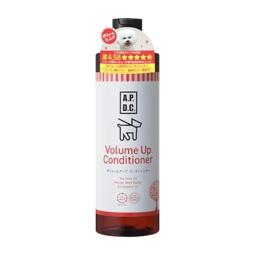 「A.P.D.C. ボリュームアップコンディショナー 500ml (新パッケージ品) 全犬種対応 ハーブ ふんわり仕上げ ティーツリーの香り」▼4528636808099▼(商品説明)ボリュームアップコンディショナー-/500ml/13A2024VCL・Style:ボリュームアップコンディショナーSize:500ml・健康的なボリューム感軟毛や毛量の少ない犬の被毛に、植物性アミノ酸と天然キトサン、マンゴー種子バター、カカドゥプラムなどを配合し、健康的なボリューム感を実現しました。被毛にハリ・コシ・弾力を与え、しっかりと立ち上がったふんわりとした仕上がりです。プードルのようなカーリーコートから、テリアなどのワイヤーコートの犬種にオススメ。・香り持ちが良いオーストラリア原産の上質なエッセンシャルオイルの爽やかな香りが魅力的。・A.P.D.C.ブランドコンセプト日常的に使うものだから。より安心・安全なケアアイテムで、愛犬とコミュニケーションを深めてもらいたい。犬の身体に直接触れコンディションを飼い主自らが感じてもらいたい。そんな想いからうまれました。・リニューアルのご案内~ 犬にも、地球にもやさしい製品づくり~バージンプラスチックから100%リサイクルペットボトルへ。ペット業界では珍しいエコボトルの導入をいたしました。パルプを使用し商品紹介 健康的なボリューム感軟毛や毛量の少ない犬の被毛に、植物性アミノ酸と天然キトサン、マンゴー種子バター、カカドゥプラムなどを配合し、健康的なボリューム感を実現しました。被毛にハリ・コシ・弾力を与え、しっかりと立ち上がったふんわりとした仕上がりです。プードルのようなカーリーコートから、テリアなどのワイヤーコートの犬種にオススメ。 原材料・成分 マンゴー種子バター、植物性アミノ酸、キトサン、カカドゥプラム、ユーカリオイル、ローズマリーオイル、ラベンダーオイル、ティーツリーオイル、シトロネラオイル、ブレンドエッセンシャルオイル、香料、保存料 など 使用方法 シャンプー後、犬の全身にコンディショナーの原液または2~8倍に薄めたものを適量なじませた後、洗い流してください。
