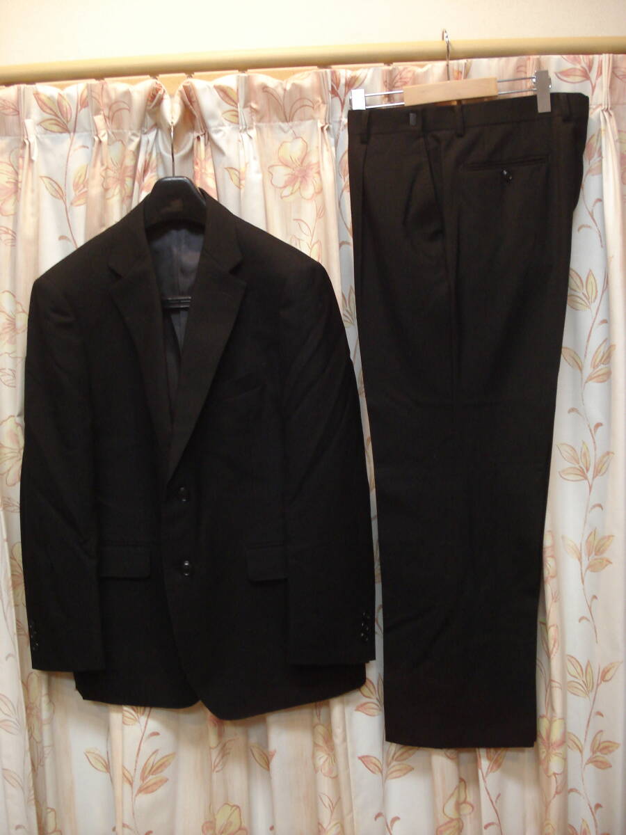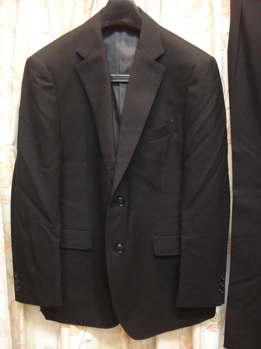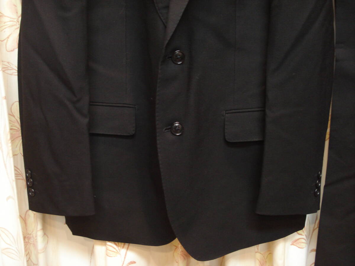 送料無料!美品!秋・冬もの!高級!ズボンアジャスター調節対応可能!ブラックフォーマルシングルスーツ!BE4サイズ!ウェスト:94cm~105cm(アジャスターにて調節対応可能!)黒色!毛:100%!定番ブラックシングルスーツ!です。。色は、とても高級感あるオシャレな、「黒色!」の、送料無料!美品!秋・冬もの!高級!ズボンアジャスター調節対応可能!ブラックフォーマルシングルスーツ!BE4サイズ!ウェスト:94cm~105cm(アジャスターにて調節対応可能!)黒色!毛:100%!定番ブラックシングルスーツ!です。表示サイズは、「BE4サイズ!」で、「身長:165cm・共初:96cm」で、素人寸サイズは、約「肩幅:51cm・着丈:71cm・袖丈:59cm・脇下幅:60cm・ウェスト:94cm~105cm(アジャスターにて調節対応可能!)・股下:72cm・ズボン裾幅:23cm」です。股下寸法:72cmですが、折り返し部が、約10cmありますので、最大股下寸法:約80cm位まで可能です。。ウェスト部の生地の余生地が、約7cmありますので、あと約5cm位はウェストを出す事が可能です。ズボンのタックは、片側1タックの合計2タックです。ベントとは上着の背面下部の切れ目の事です。中央に1つありますので、「センターベント!」です。上着の背中裏地は、「総裏!」です。素材は、「毛:100%」です。。