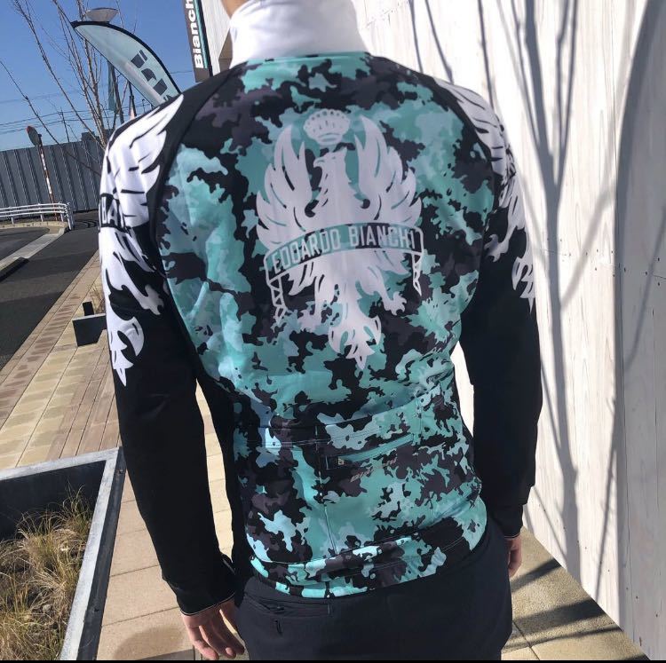 裾の滑り止めテープには『Bianchi PASSIONE CELESTE 1885』のプリントを施しています。