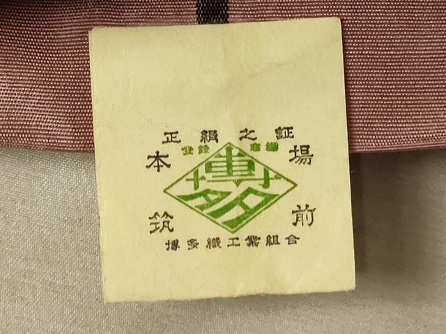 | 【正絹】 詳細に関しましては、画像をご確認ください。 本場筑前博多織は、 福岡県福岡市博多区やその周辺で生産される絹織物です。 仏具のひとつである独鈷、華皿を基にした幾何学模様が織られています。 江戸時代に筑前藩主だった黒田長政が幕府への献上品にしたことから、 博多献上、献上博多とも呼ばれます。 横畝が際立って見える経畝織りという織りになっています。 30〜60本の細い経糸を使うため、こしやはりがあり、 地合が硬く、光沢感があります。 きちんと締まり、くずれにくい、締めやすい帯といわれています。 大変上質な逸品になります。 お安く出品致しますので、是非この機会にいかがでしょうか?