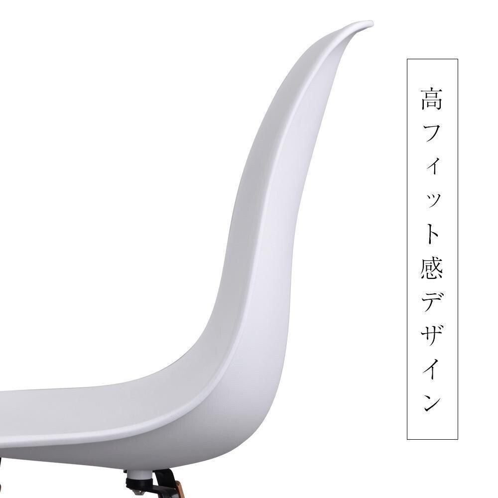 【身体に自然とフィットするシェル型座面】イームズチェア最大の魅力は、何と言ってもなめらかな曲線を描く、座面一体のシェル型デザインです。ポップな印象のシェル型座面は、想像以上のフィット感で腰を優しく包み込みます。身体に馴染む座り心地は長年愛されてきたチェアならではです。